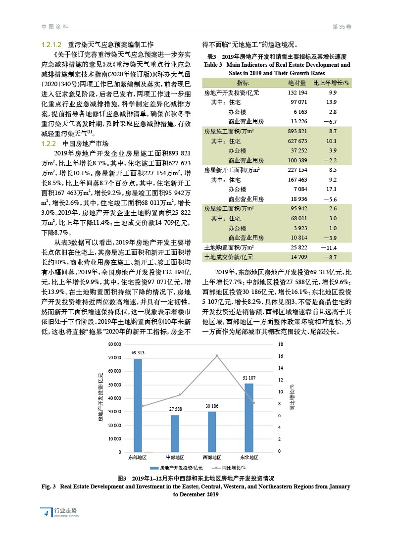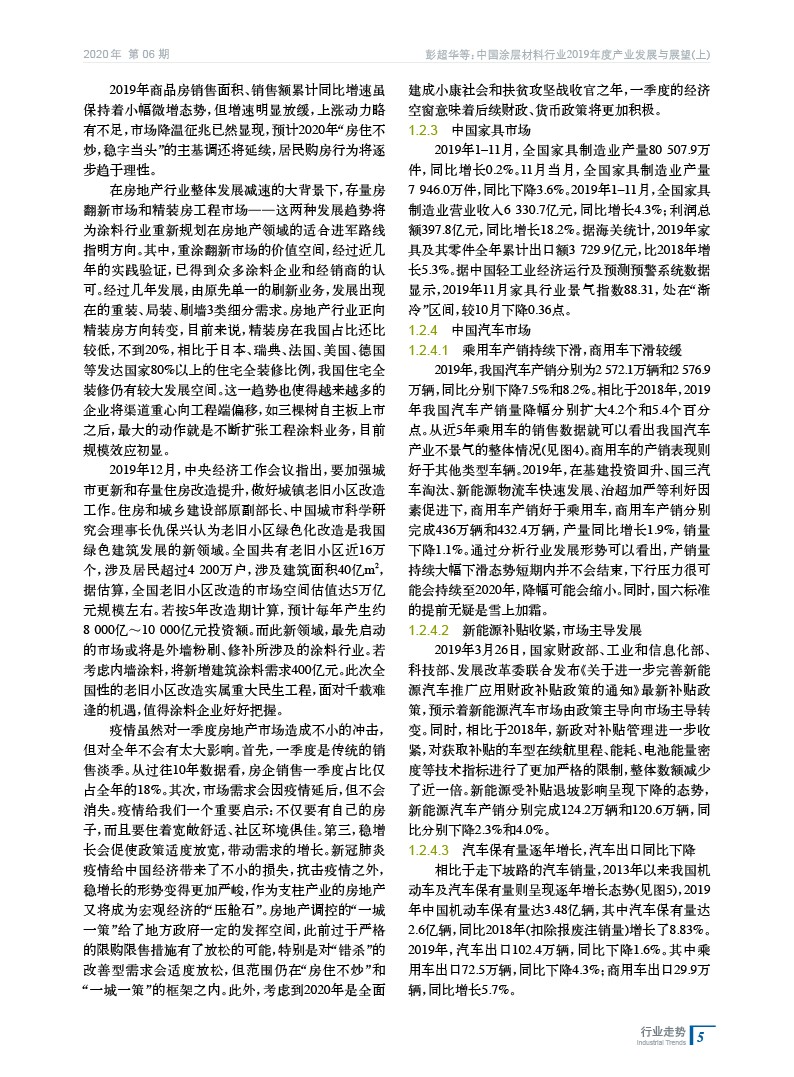 摘要:概述了中國經濟發展特點及涂料行業相關政策和其下游房地產、家具、汽車、船舶等行業發展形勢。以國家統計局數據為基礎,對2019年中國涂料行業的產量、產值、主營業務收入、主要經濟指標和進出口等經濟運行情況進行了分析,剖析了中國涂料細分市場運行情況。在總結2019中國涂料行業主要運行特點的基礎上,結合突發新冠肺炎疫情,對2020年中國涂料行業的前景進行了展望。