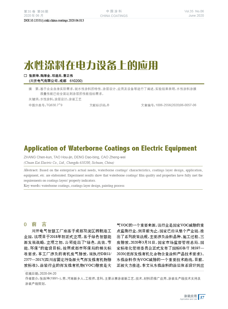 本文系作者@張辰坤,陶厚金,鄧道兵,曹正偉 授權中國涂料網發表,并經中國涂料網編輯,未經允許不得轉載,如需轉載請聯系chinacoatingnet@vip.163.com