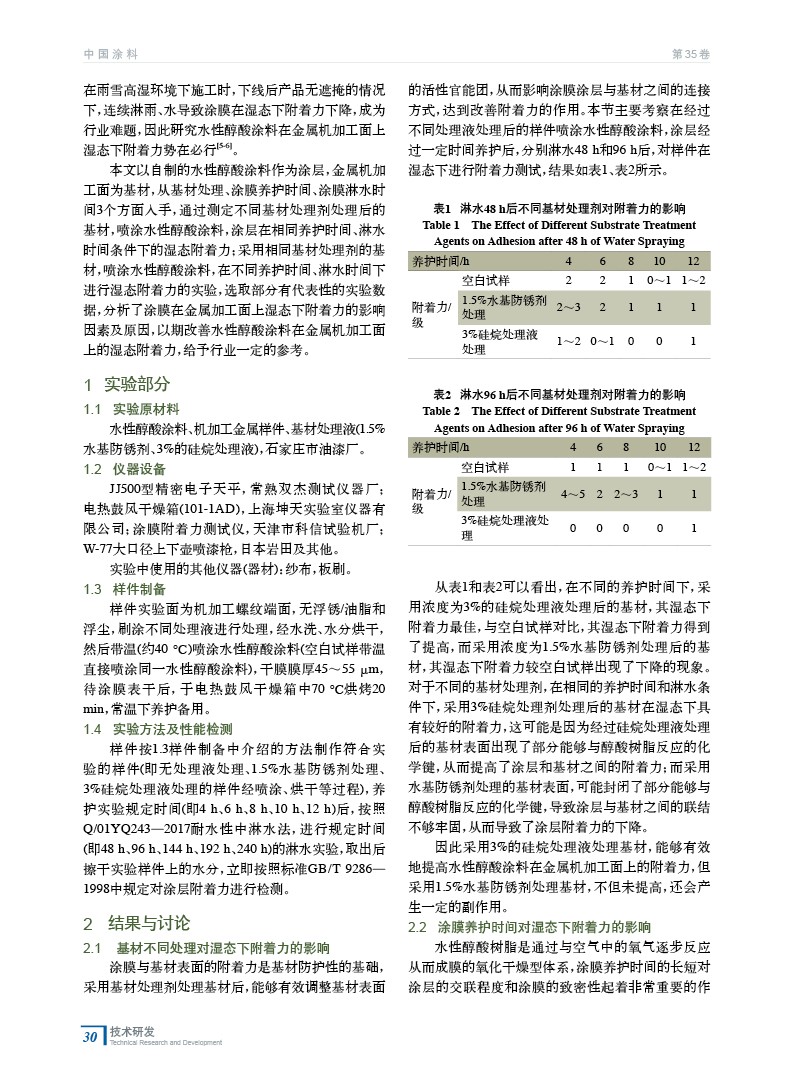 水性醇酸涂料在金屬機(jī)加工面上濕態(tài)下附著力的研究