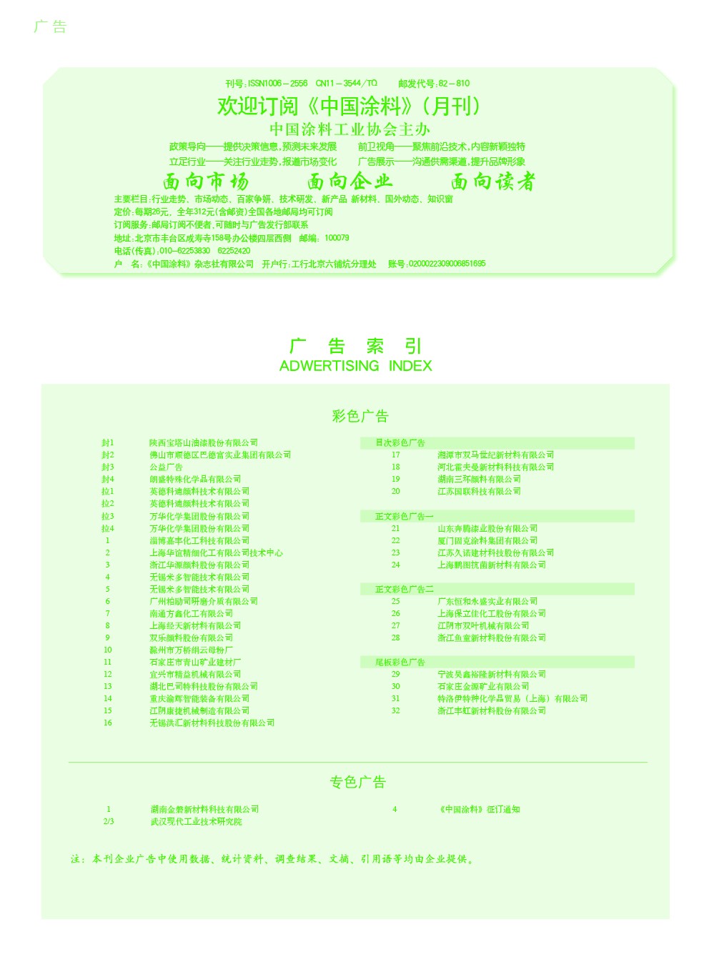 湖南金磐、武漢現(xiàn)代工業(yè)技術(shù)研究院、《中國(guó)涂料》征訂通知