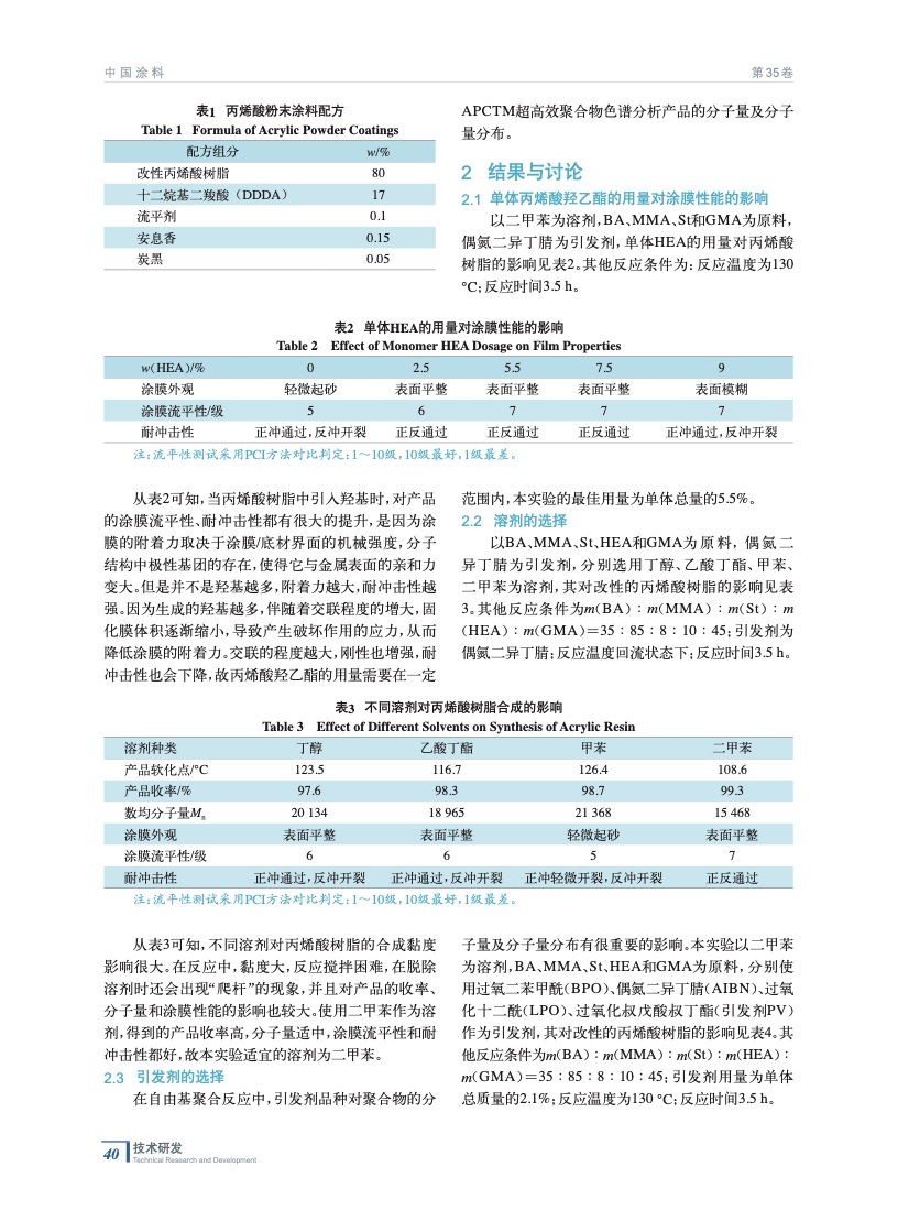 粉末涂料用新型丙烯酸樹脂的合成及應用研究