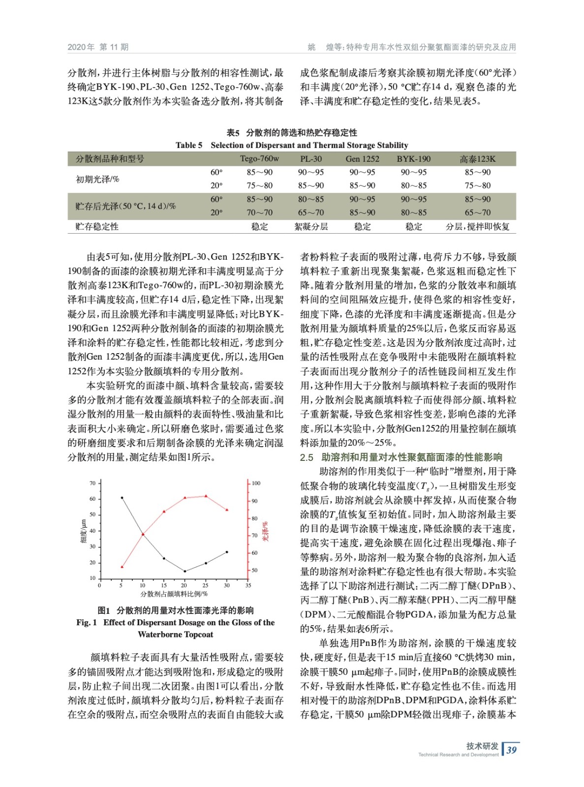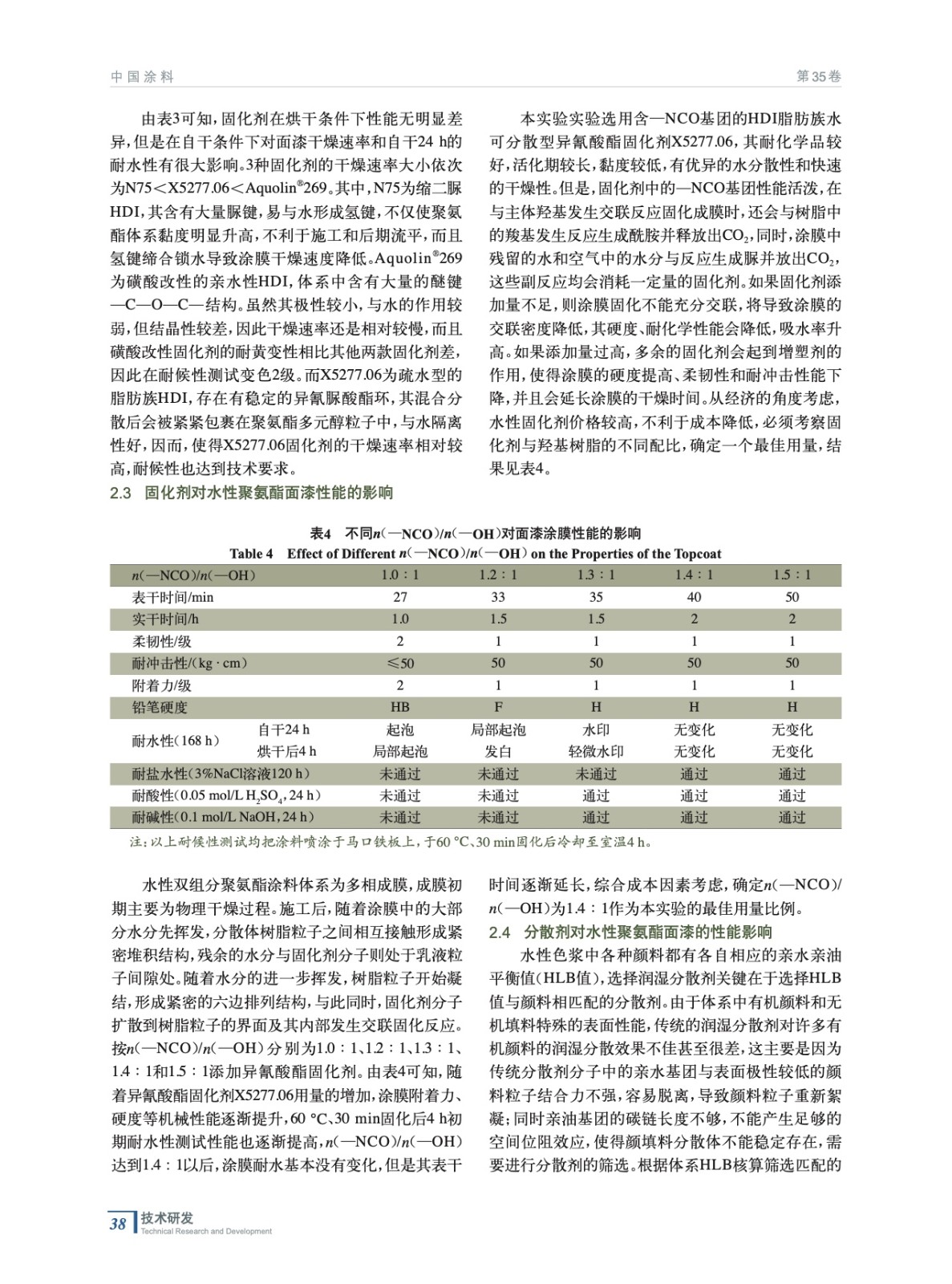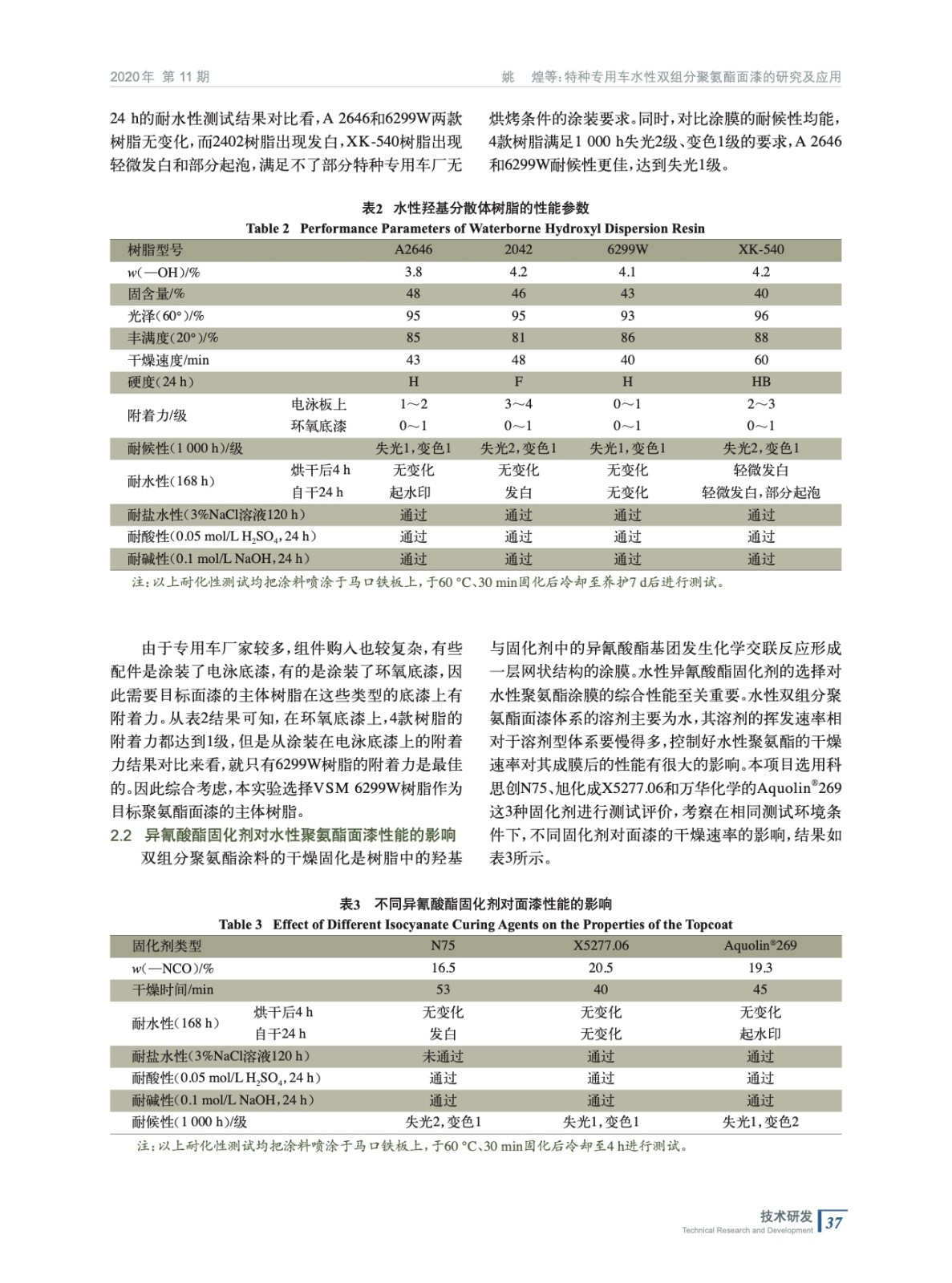特種專用車水性雙組分聚氨酯面漆的研究及應(yīng)用