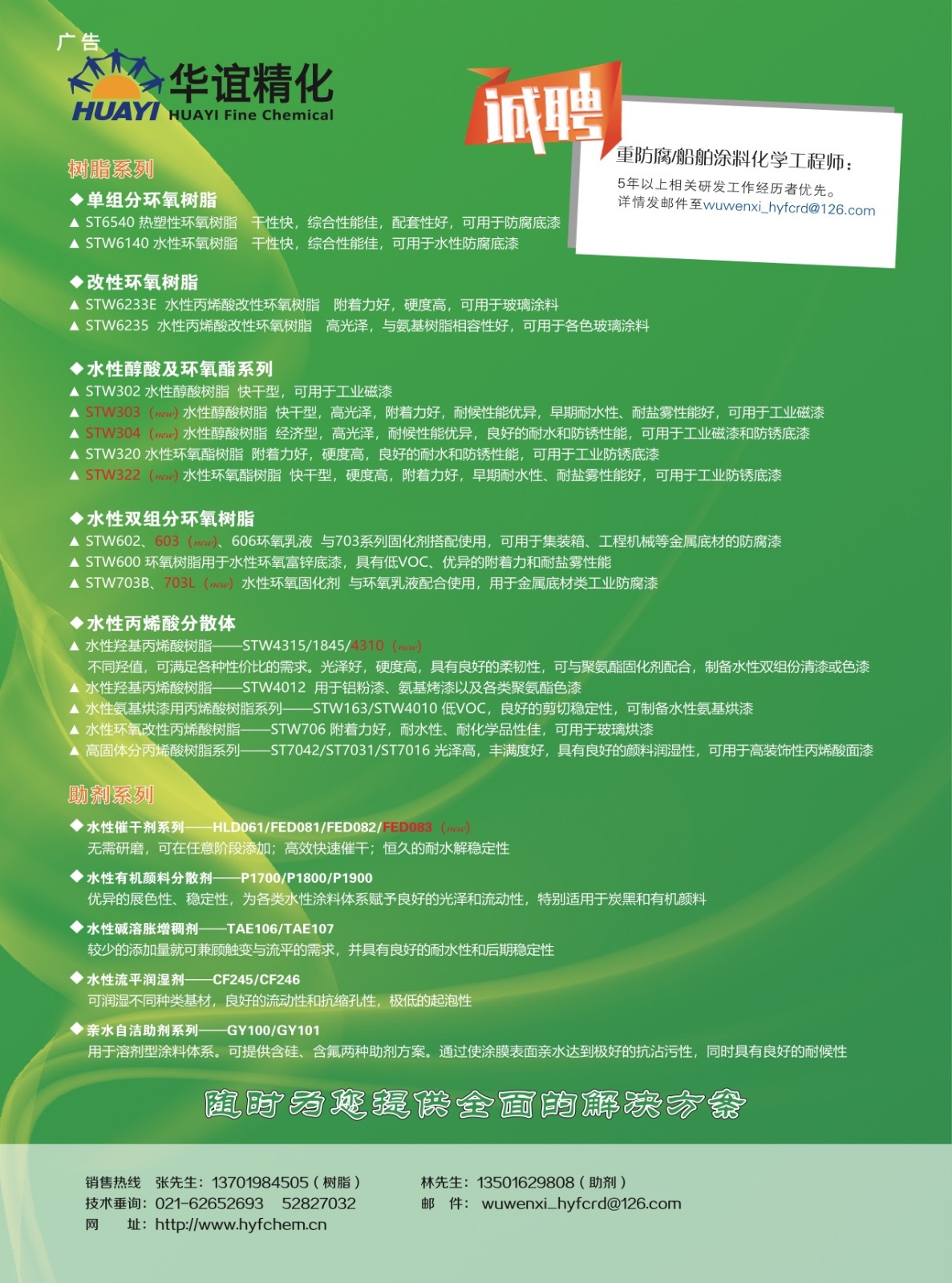 封1:萬華化學集團股份有限公司;封2:上海華誼精細化工有限公司技術中心;封3:公益廣告;封4:德謙(上海)化學有限公司