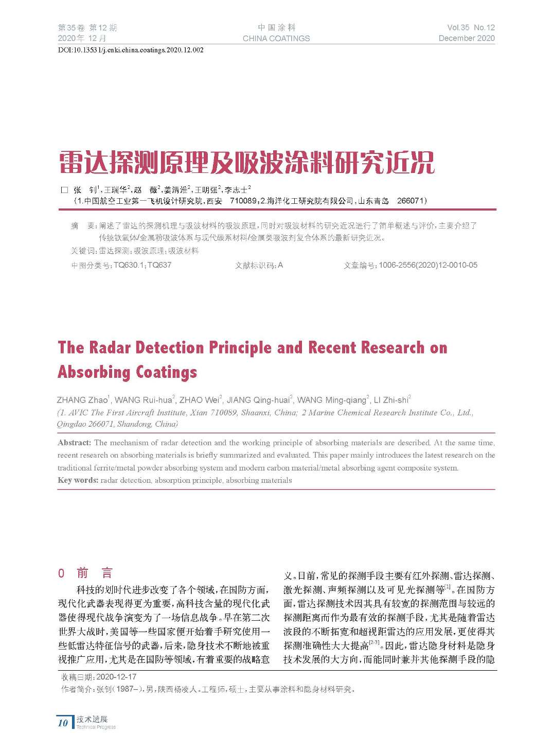 本文系作者@張 釗,王瑞華,趙 薇,姜清淮,王明強,李志士 授權中國涂料網發表,并經中國涂料網編輯,未經允許不得轉載,如需轉載請聯系chinacoatingnet@vip.163.com