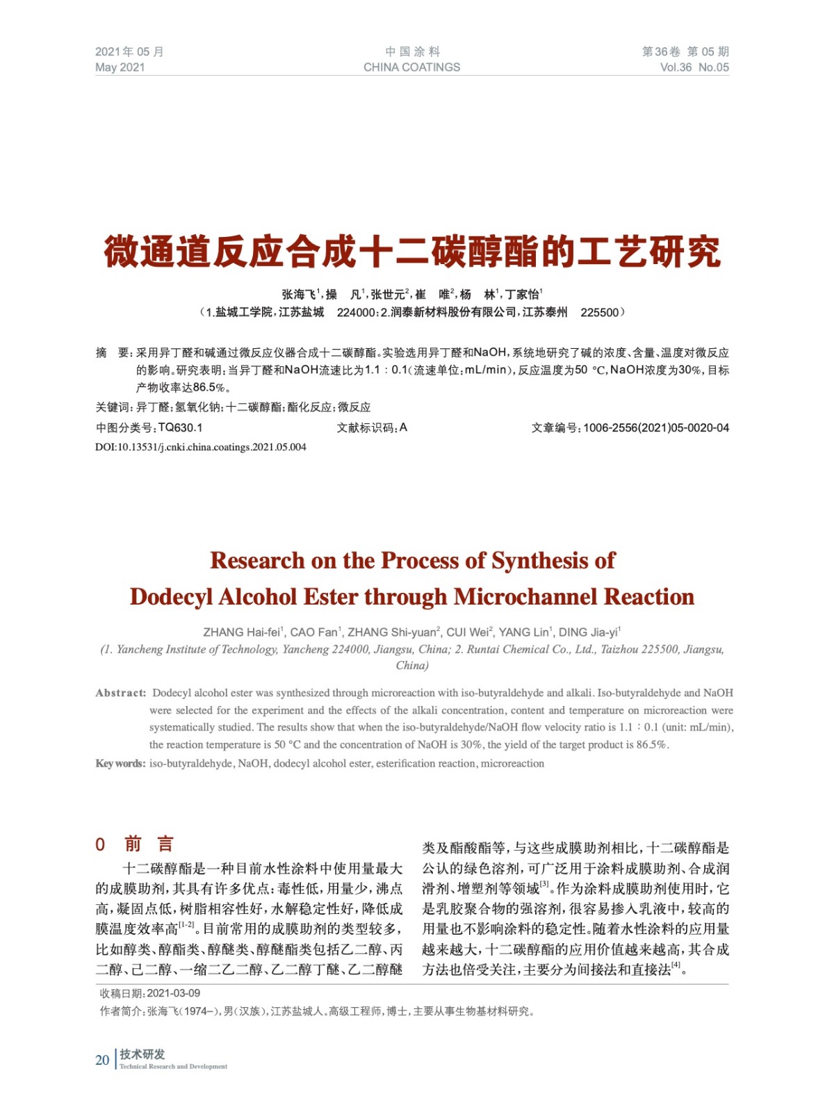 本文系作者@張海飛,操 凡,張世元,崔 唯,楊 林,丁家怡 授權中國涂料網發表,并經中國涂料網編輯,未經允許不得轉載,如需轉載請聯系chinacoatingnet@vip.163.com
