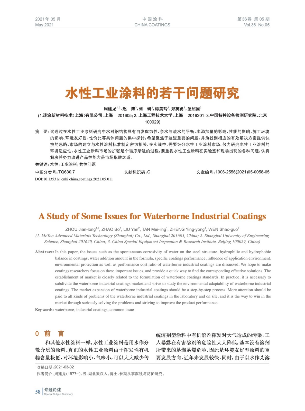 本文系作者@周建龍,趙 博,劉 研,譚美玲,鄭英勇,溫紹國 授權中國涂料網發表,并經中國涂料網編輯,未經允許不得轉載,如需轉載請聯系chinacoatingnet@vip.163.com