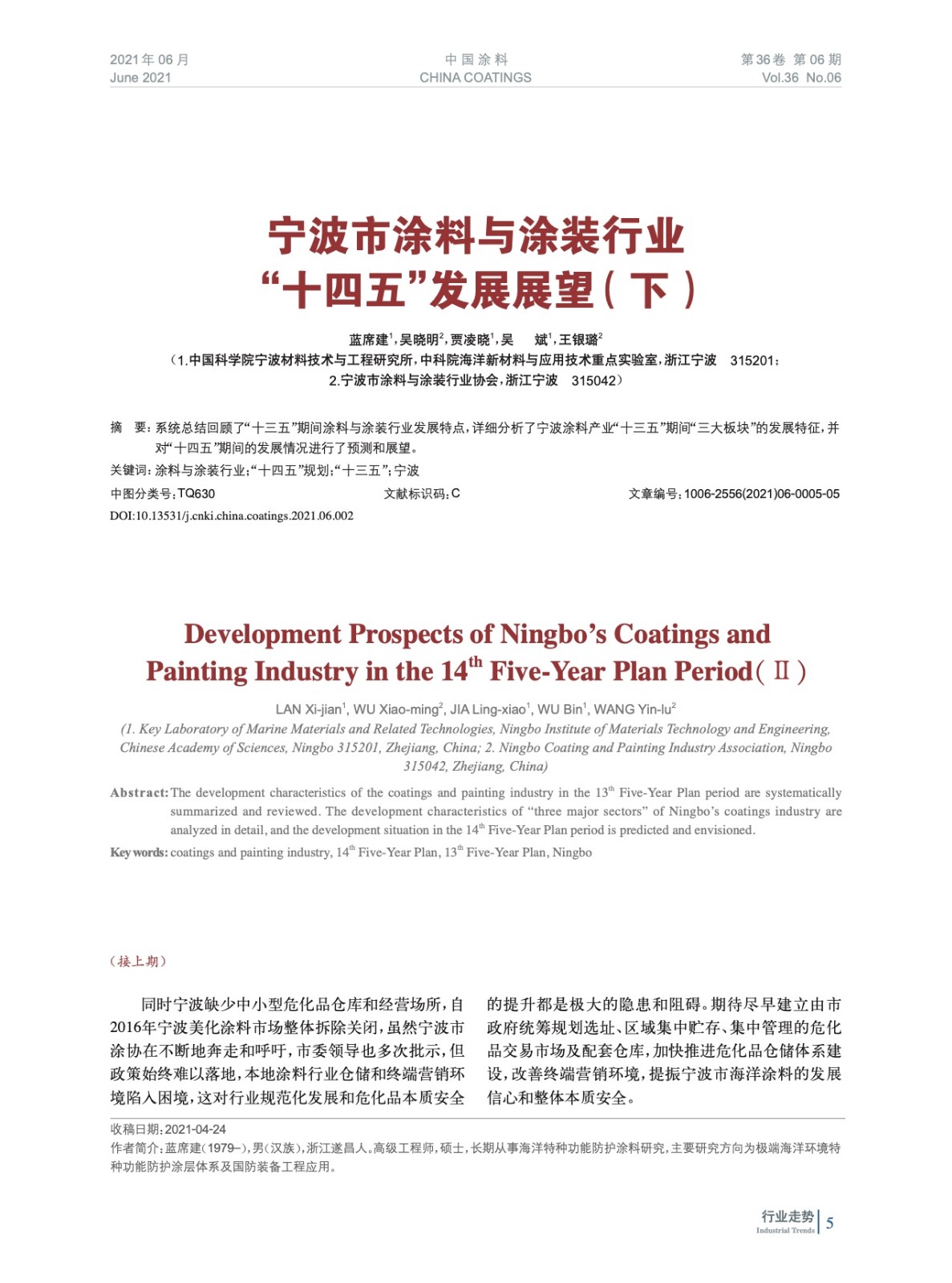 寧波市涂料與涂裝行業(yè)“ 十四五”發(fā)展展望(下)