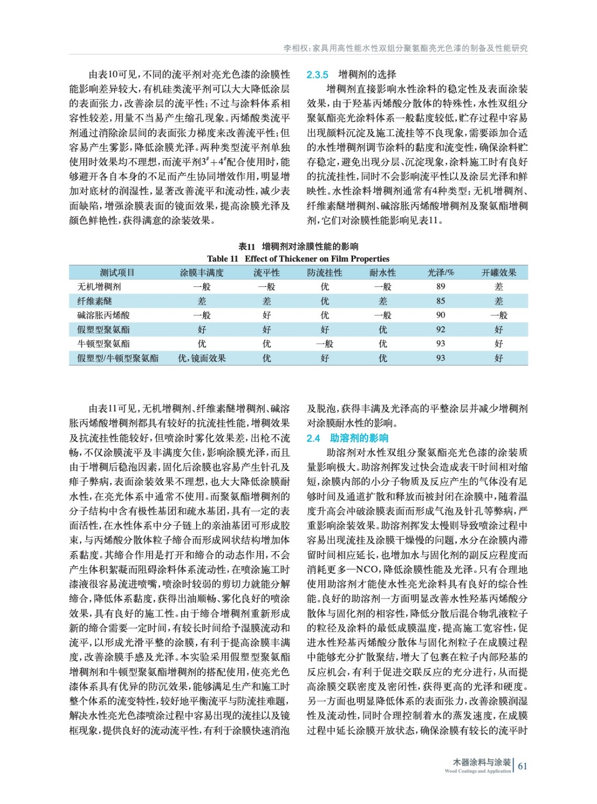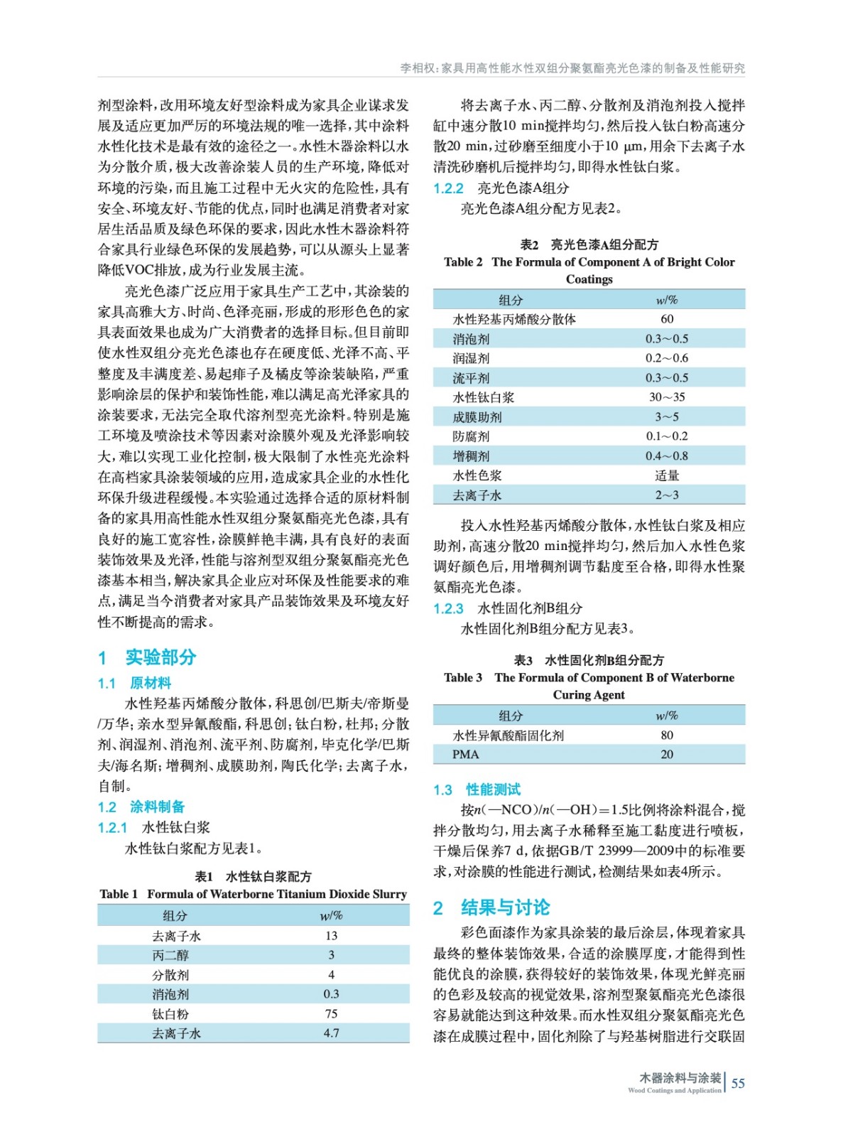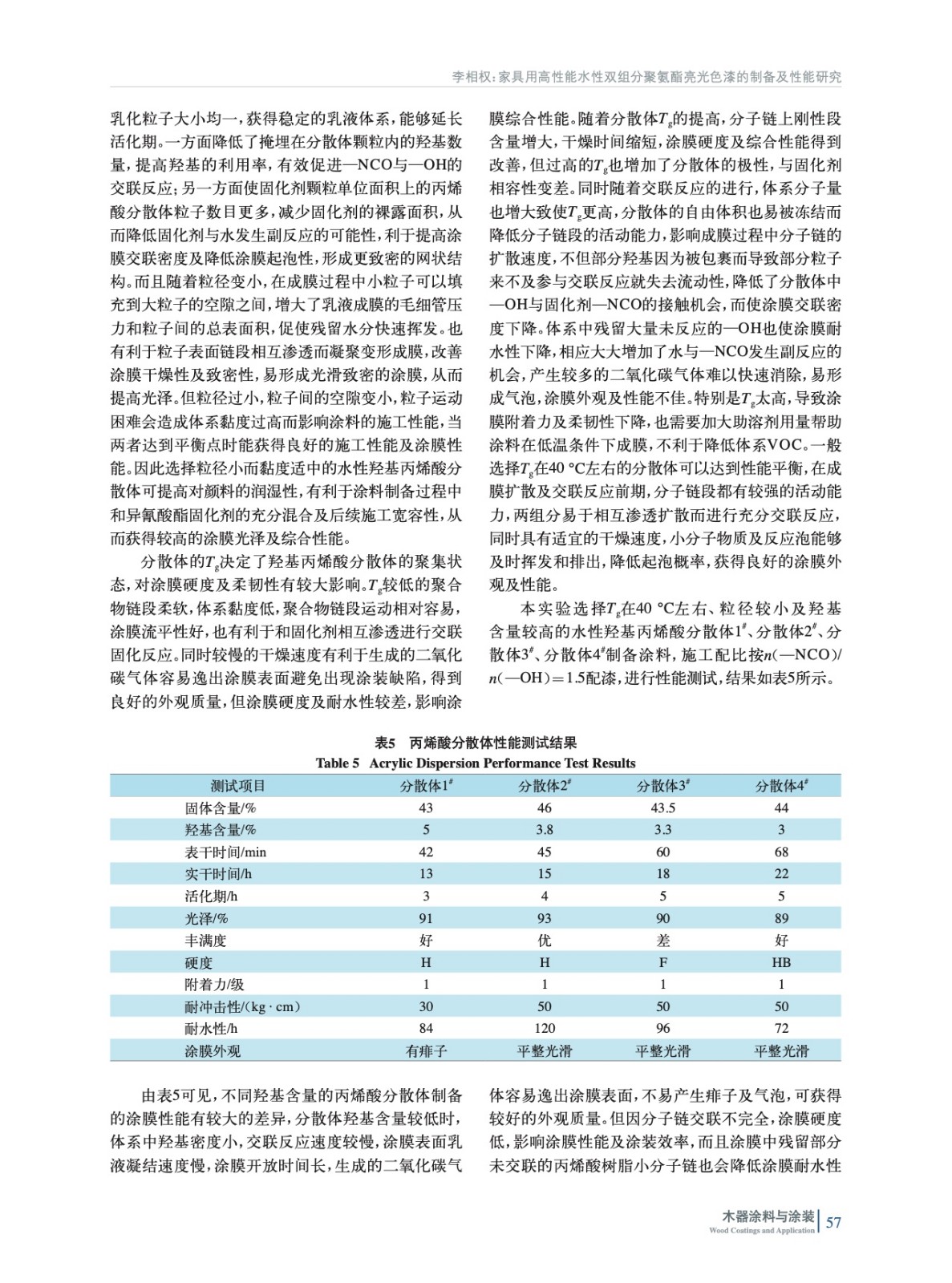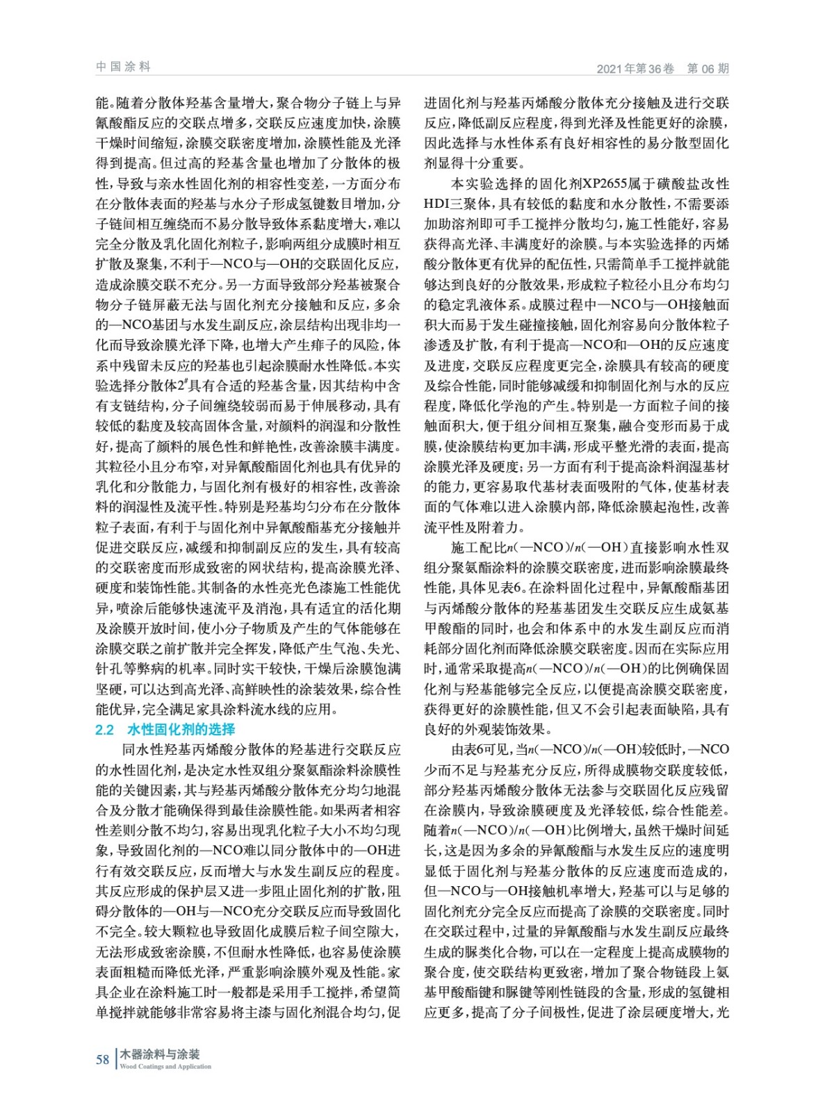 家具用高性能水性雙組分聚氨酯亮光色漆的制備及性能研究