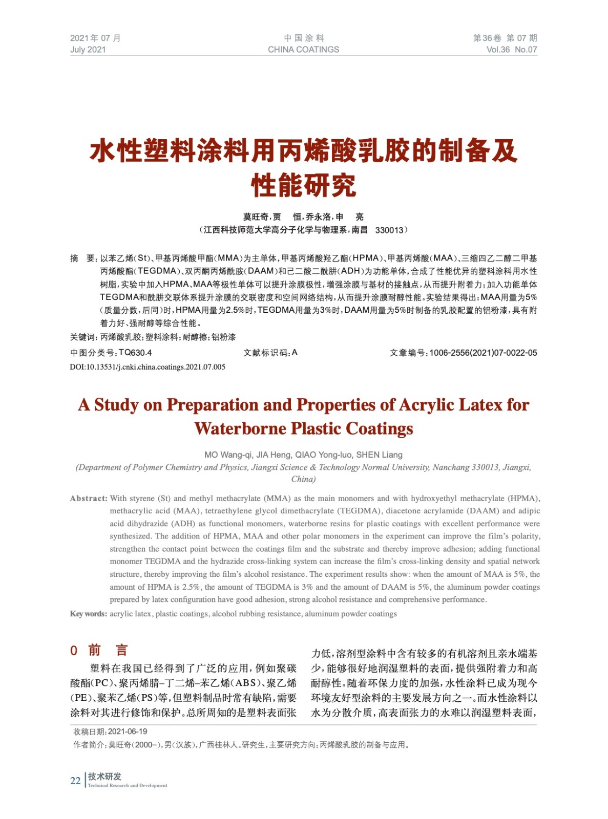 本文系作者@莫旺奇,賈 恒,喬永洛,申 亮 授權(quán)中國涂料網(wǎng)發(fā)表,并經(jīng)中國涂料網(wǎng)編輯,未經(jīng)允許不得轉(zhuǎn)載,如需轉(zhuǎn)載請聯(lián)系chinacoatingnet@vip.163.com
