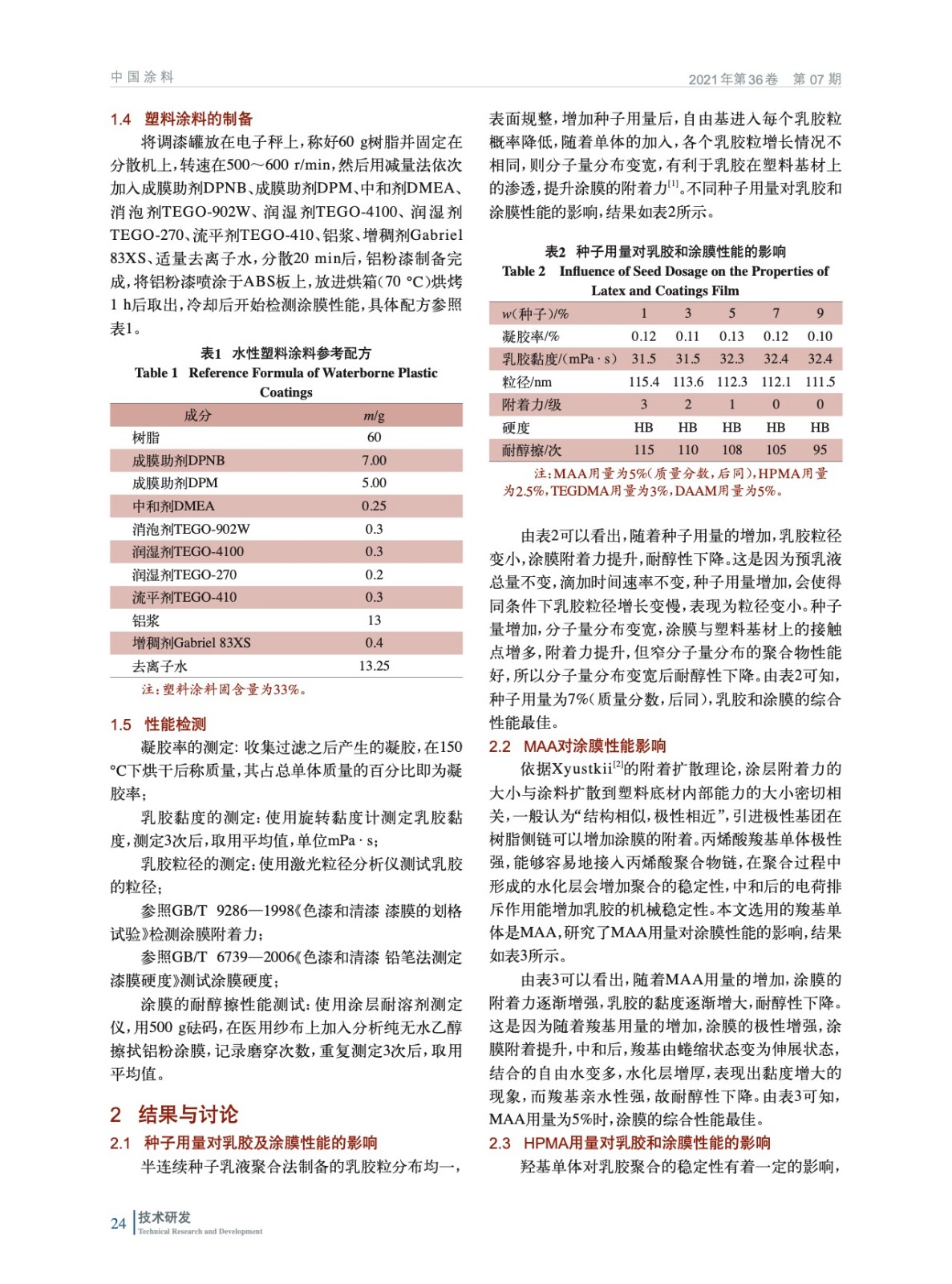 水性塑料涂料用丙烯酸乳膠的制備及性能研究