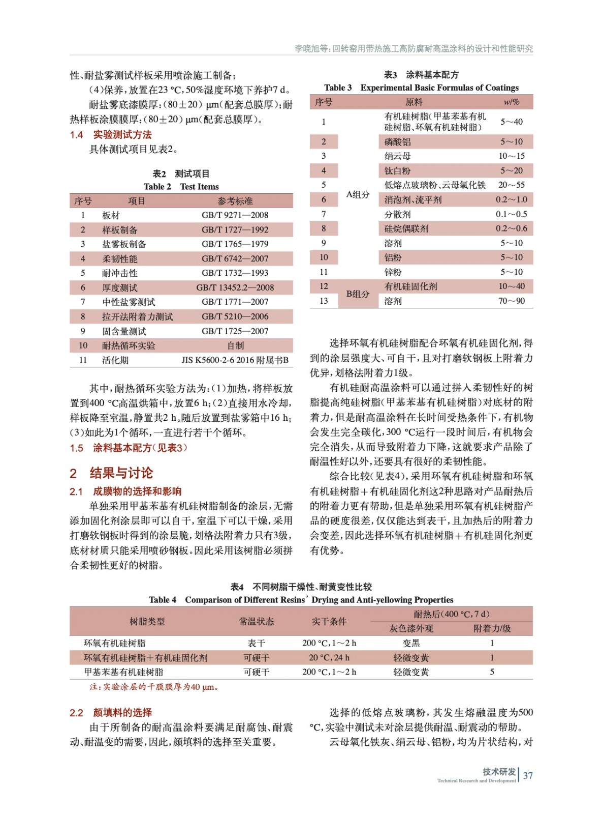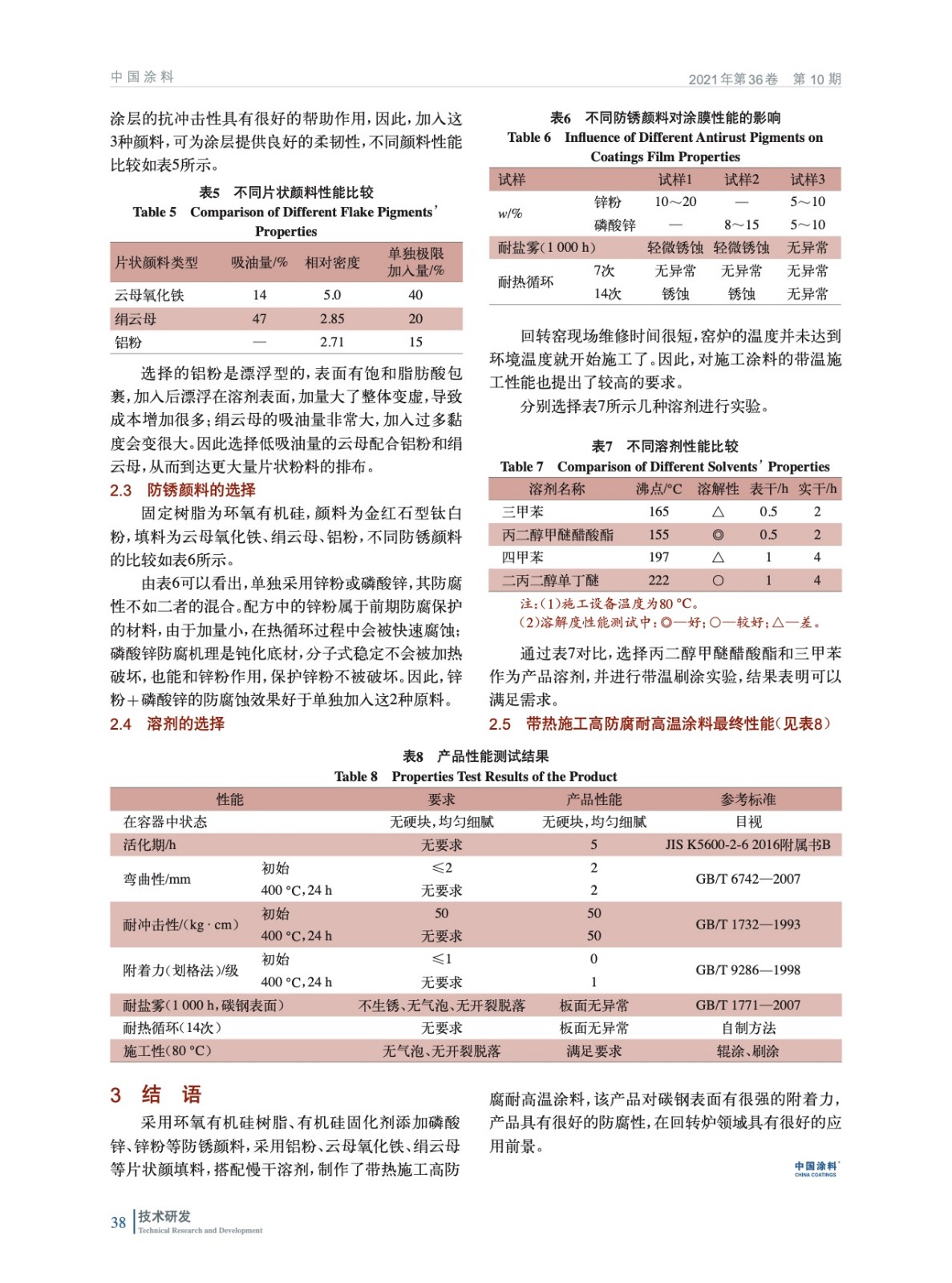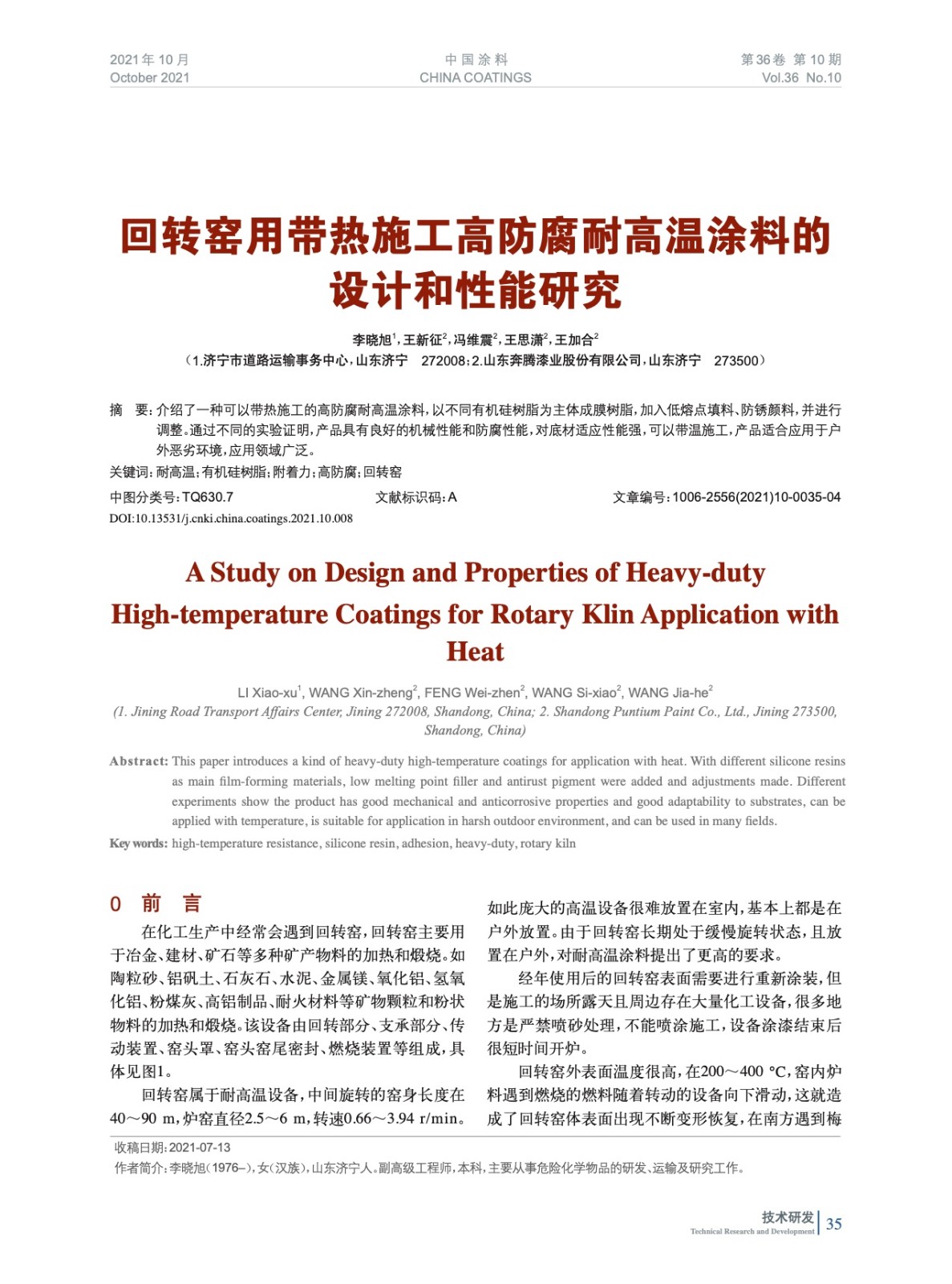 回轉窯用帶熱施工高防腐耐高溫涂料的設計和性能研究