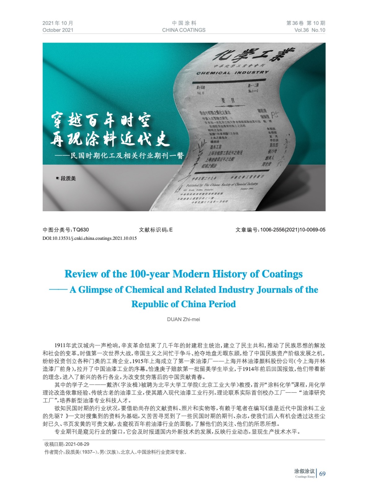 穿越百年時空 再現涂料近代史——民國時期化工及相關行業期刊一瞥