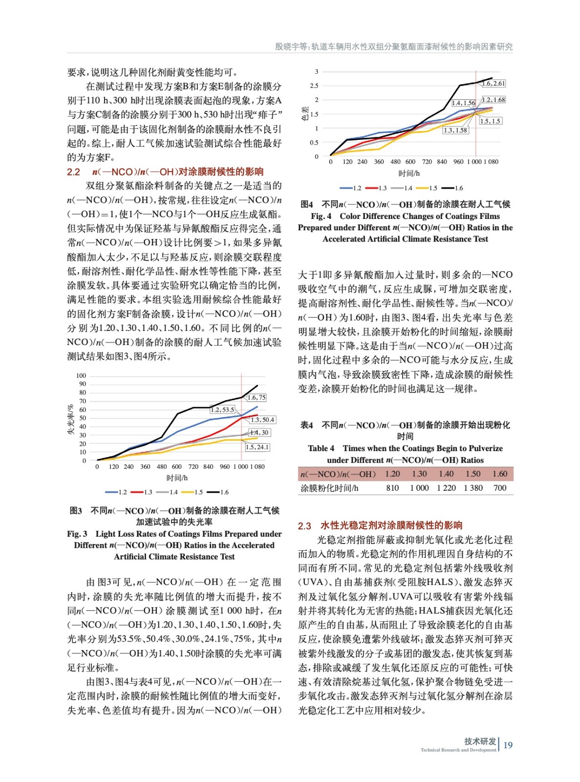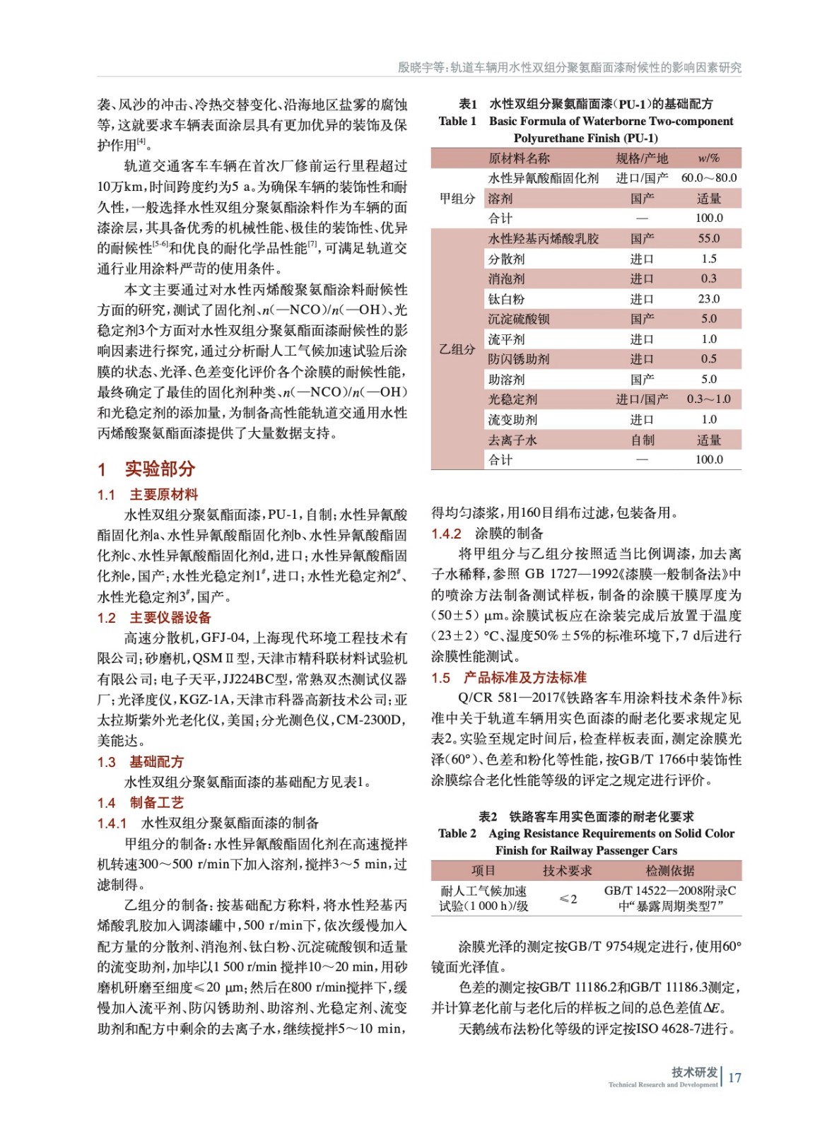 軌道車輛用水性雙組分聚氨酯面漆耐候性的影響因素研究
