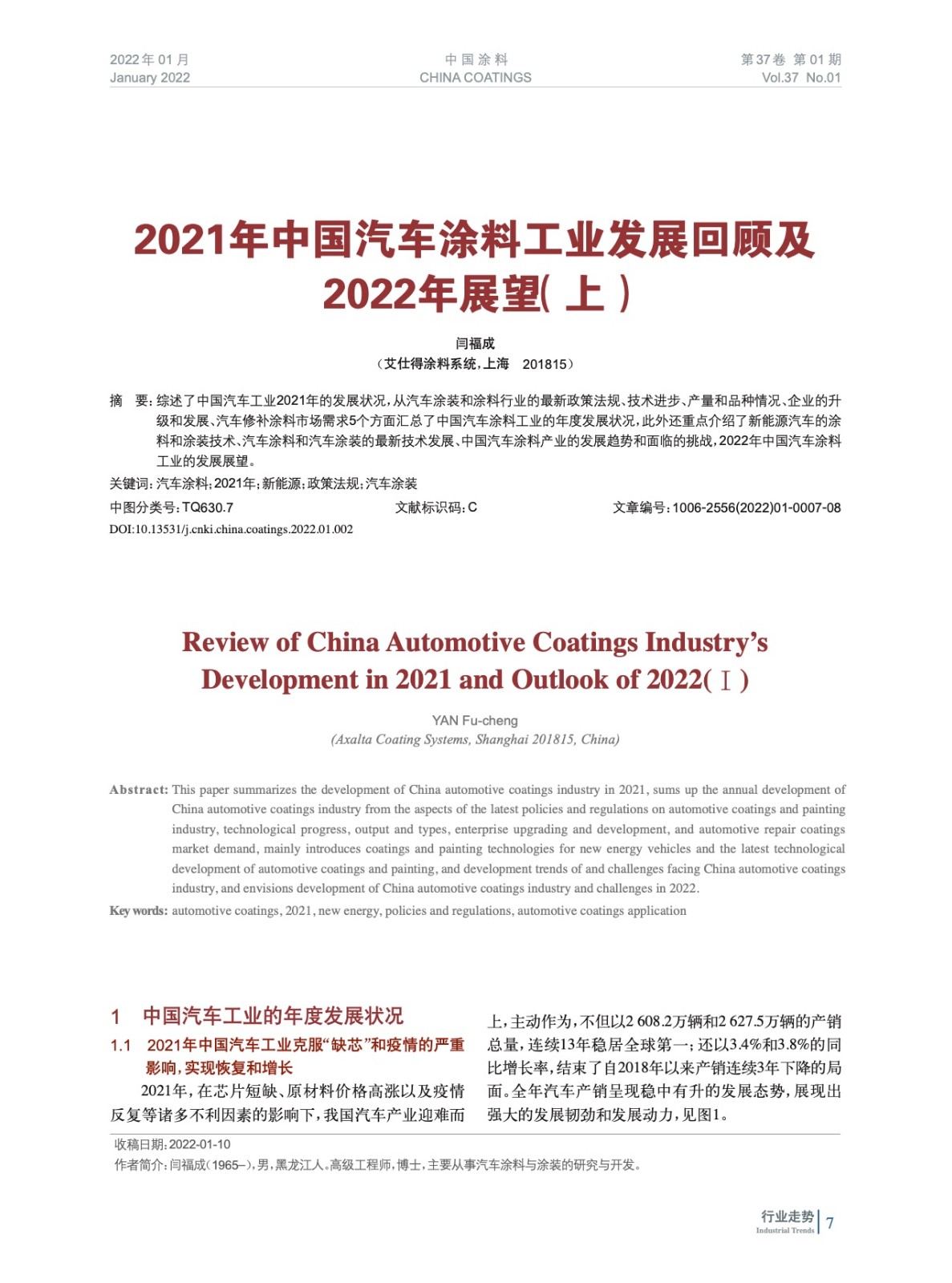 2021年中國汽車涂料工業發展回顧及2022年展望(上)