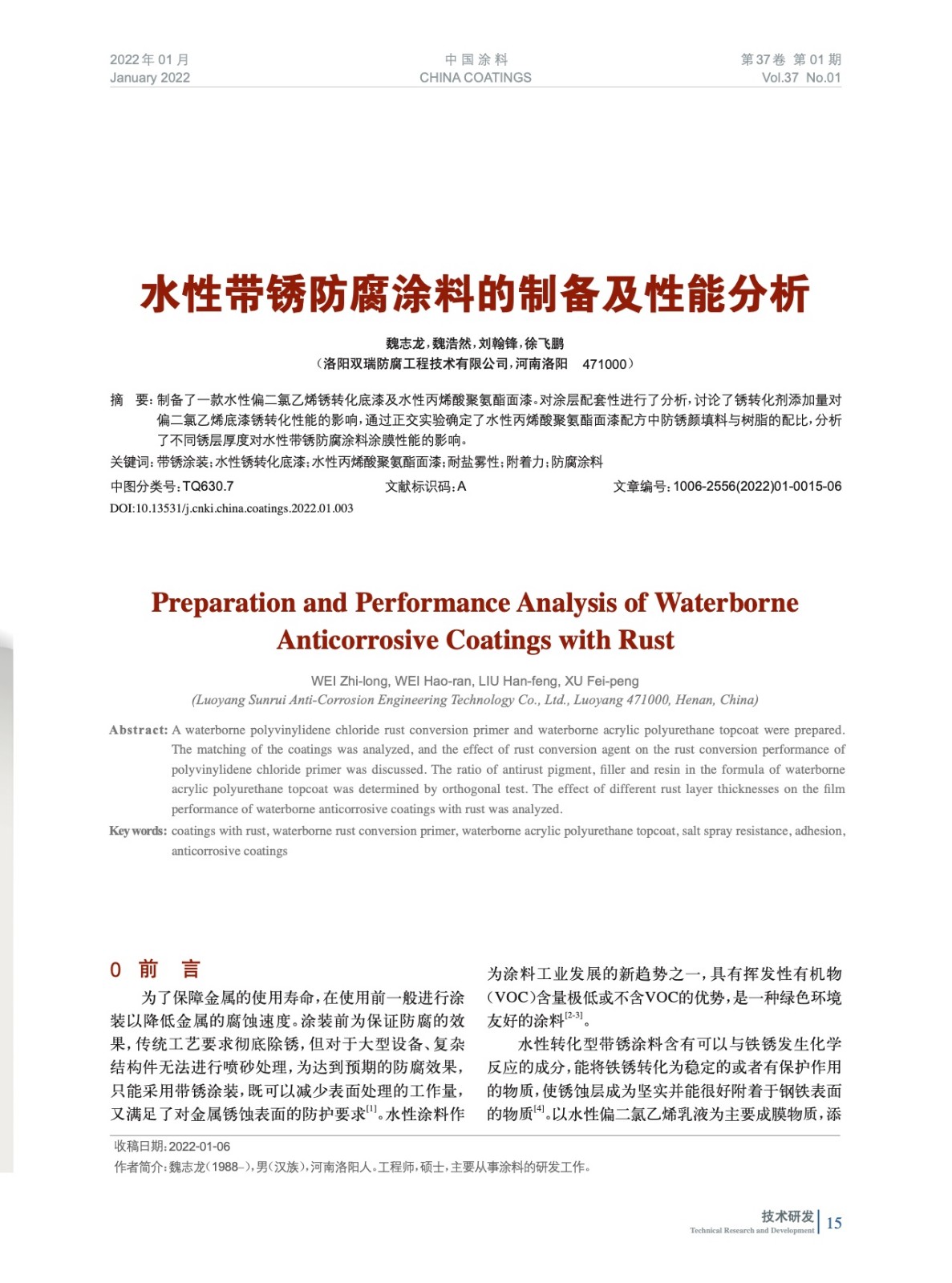 發表于2022-03-17 18:36:54| 次閱讀| 來源中國涂料| 作者魏志龍,魏浩然,劉翰鋒,徐飛鵬