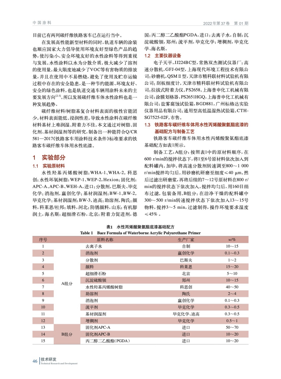 鐵路客車碳纖維車體用水性底漆的制備及影響因素研究