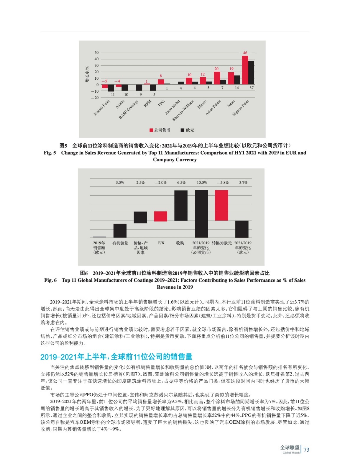摘要:編者按:過去兩年,在涂料行業的前11位涂料制造商中,哪些公司能夠最好地應對新冠肺炎疫情危機?在涂料行業跨國公司的2021年上半年財務報告中,銷售增長令人眼花繚亂。那么,“一切都好起來了”嗎?本文將進一步深入研究這些公司的銷售額、銷售量,分析“有機銷售增長”和“收購”,以及“建筑涂料”和“工業涂料”細分市場的相對變化。最后,將快速了解這些公司的盈利能力。