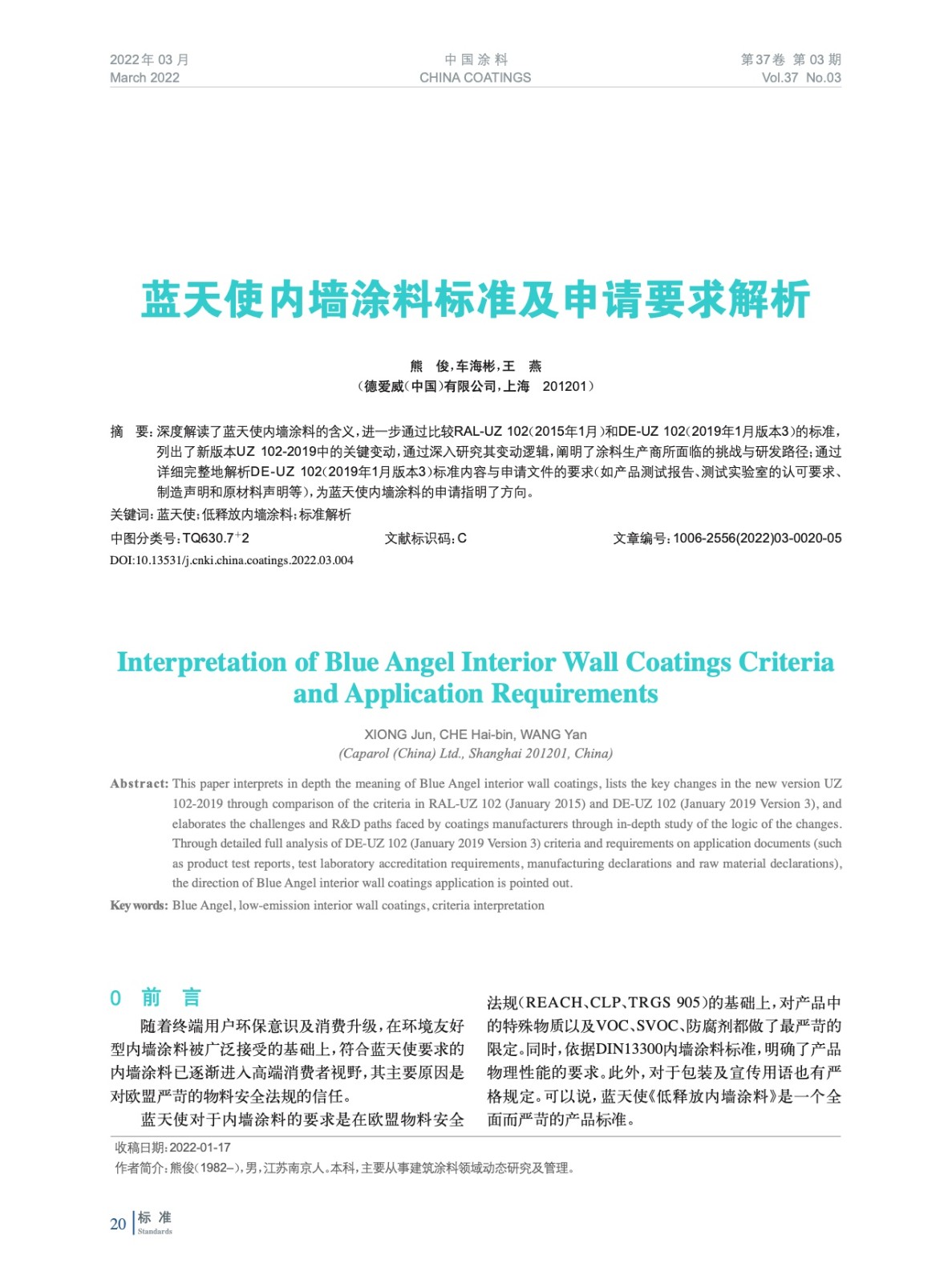 摘要:深度解讀了藍(lán)天使內(nèi)墻涂料的含義,進(jìn)一步通過比較RAL-UZ 102(2015年1月)和DE-UZ 102(2019年1月版本3)的標(biāo)準(zhǔn),列出了新版本UZ 102-2019中的關(guān)鍵變動(dòng),通過深入研究其變動(dòng)邏輯,闡明了涂料生產(chǎn)商所面臨的挑戰(zhàn)與研發(fā)路徑;詳細(xì)完整地解析新版標(biāo)準(zhǔn)內(nèi)容與申請(qǐng)文件的要求,為藍(lán)天使內(nèi)墻涂料的申請(qǐng)指明了方向。