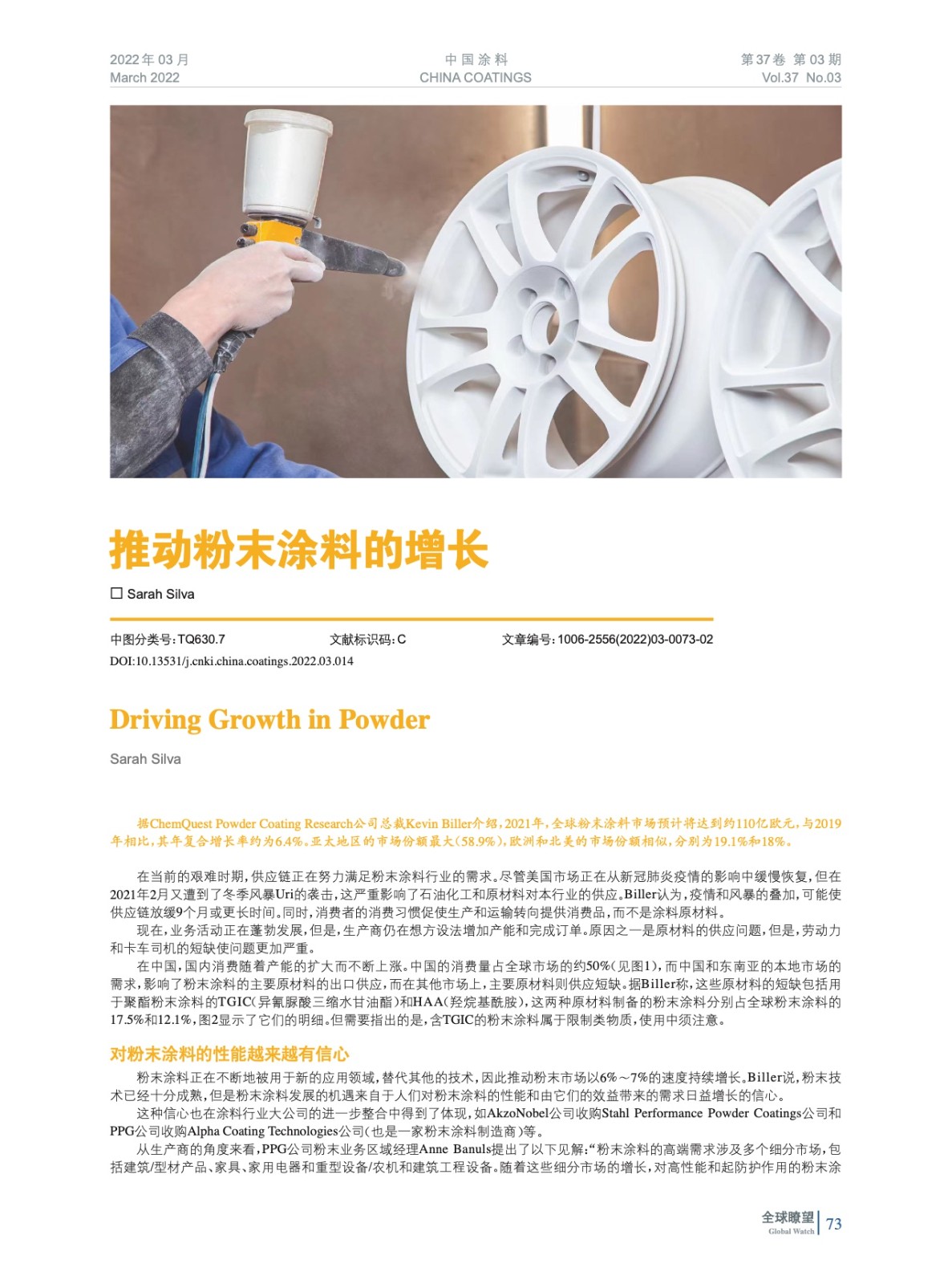 編者按:據ChemQuest Powder Coating Research公司總裁Kevin Biller介紹,2021年,全球粉末涂料市場預計將達到約110億歐元,與2019年相比,其年復合增長率約為6.4%。亞太地區的市場份額最大(58.9%),歐洲和北美的市場份額相似,分別為19.1%和18%。