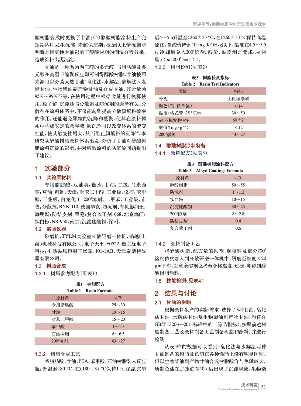 針對醇酸樹脂涂料的沉淀現象進行了分析,并對甘油種類對醇酸樹脂及涂料的影響、分散劑及防沉劑對醇酸樹脂涂料沉淀的影響進行了考察。對實驗結果進行了討論,并對醇酸涂料的防沉淀問題提出了建議。