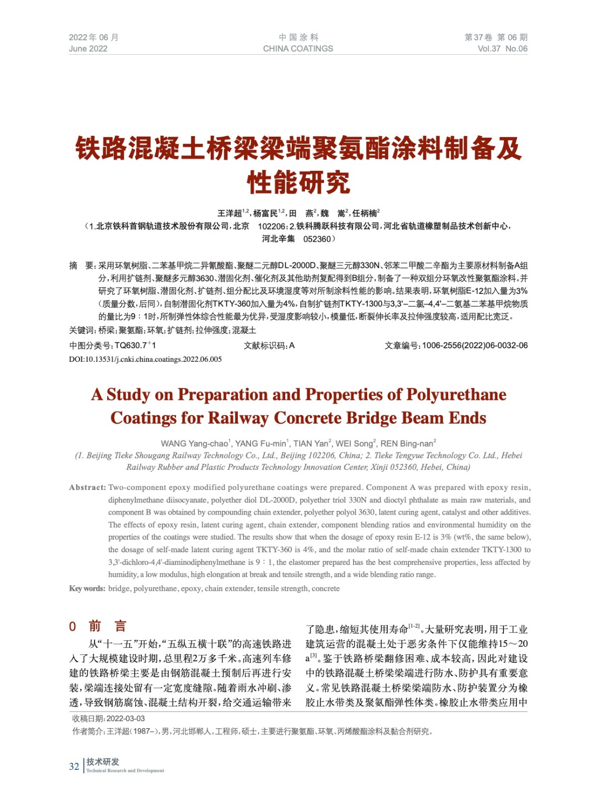 本文系作者@王洋超,楊富民,田 燕,魏 嵩,任柄楠 授權中國涂料網發表,并經中國涂料網編輯,未經允許不得轉載,如需轉載請聯系chinacoatingnet@vip.163.com