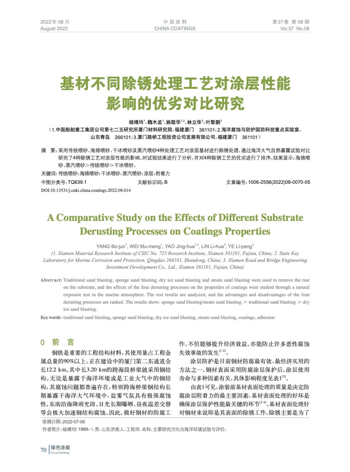 基材不同除銹處理工藝對(duì)涂層性能影響的優(yōu)劣對(duì)比研究