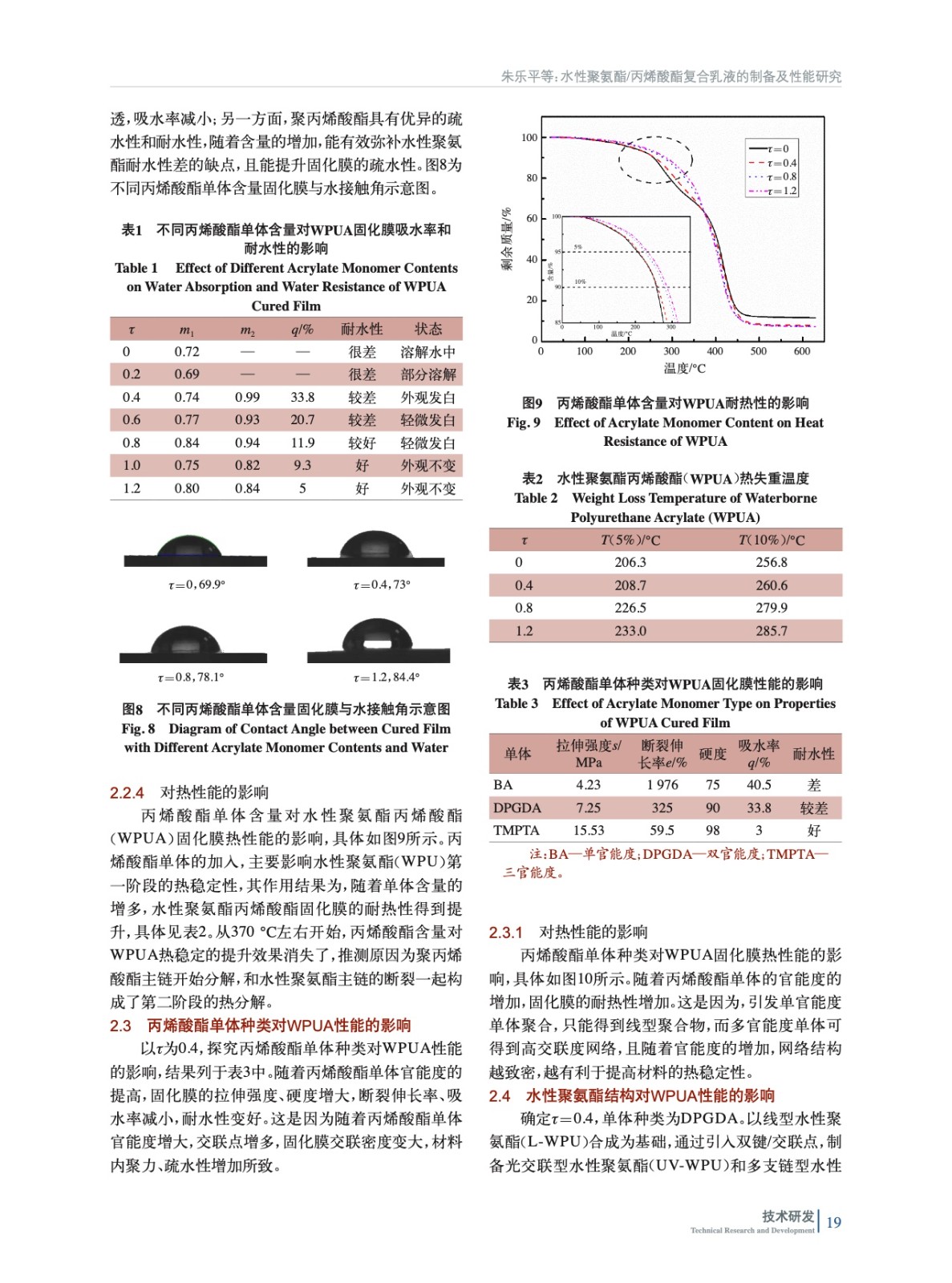 水性聚氨酯/丙烯酸酯復合乳液的制備及性能研究