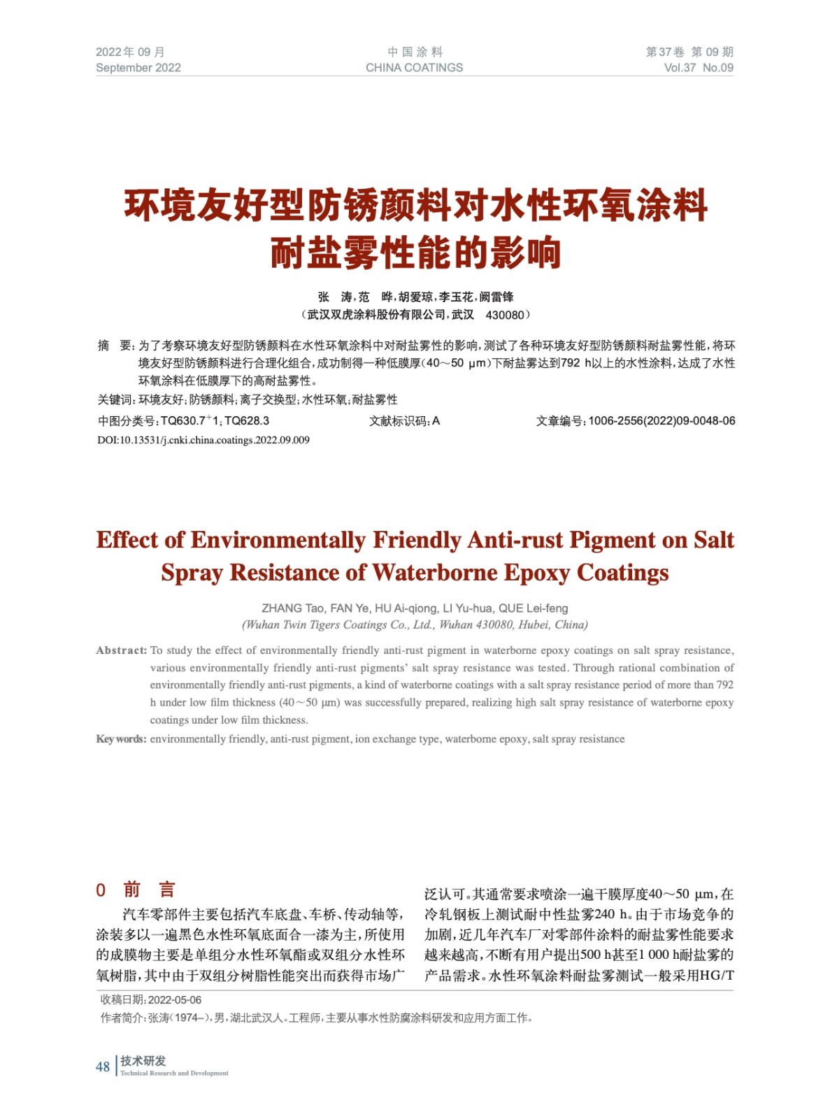 本文系作者@張 濤,范 曄,胡愛(ài)瓊,李玉花,闕雷鋒 授權(quán)中國(guó)涂料網(wǎng)發(fā)表,并經(jīng)中國(guó)涂料網(wǎng)編輯,未經(jīng)允許不得轉(zhuǎn)載,如需轉(zhuǎn)載請(qǐng)聯(lián)系chinacoatingnet@vip.163.com