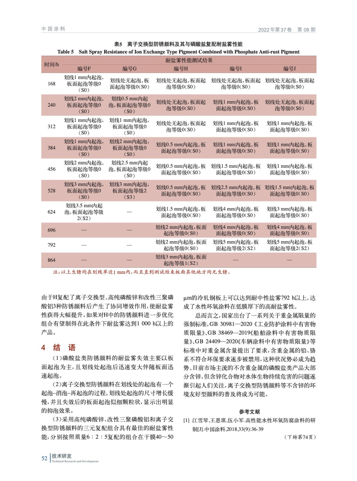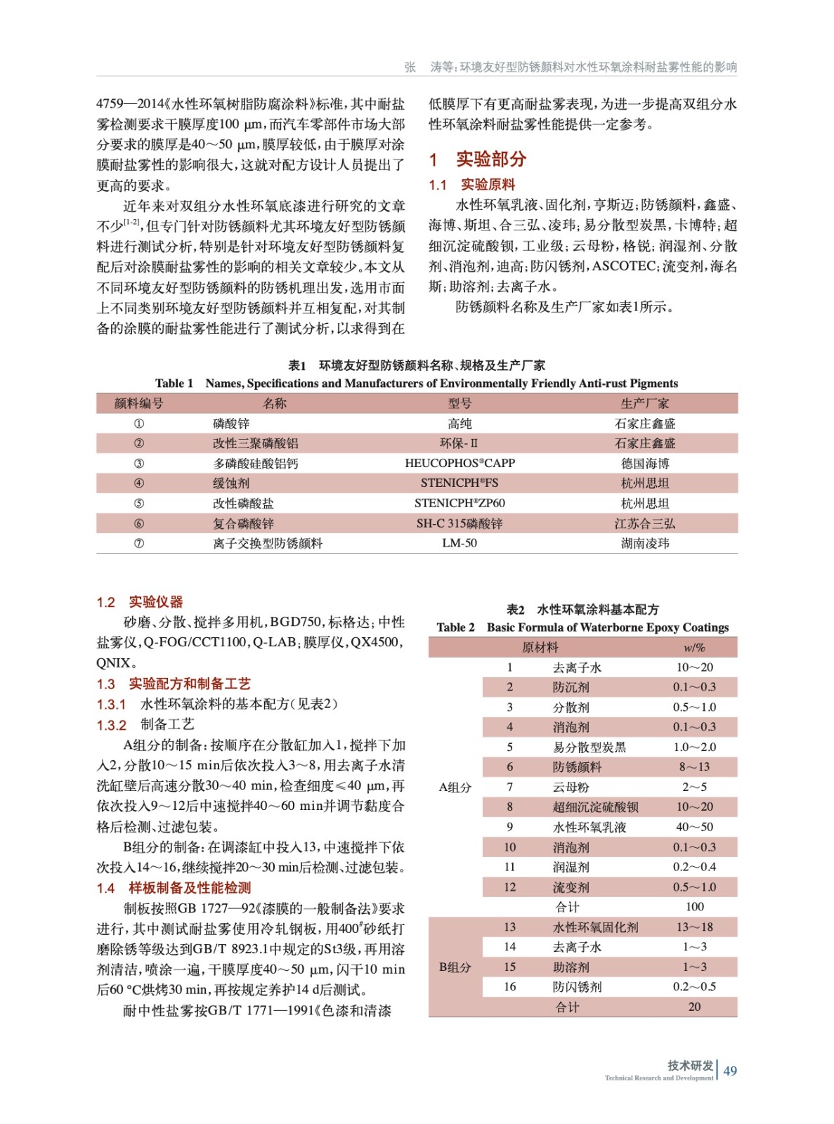 環(huán)境友好型防銹顏料對(duì)水性環(huán)氧涂料耐鹽霧性能的影響