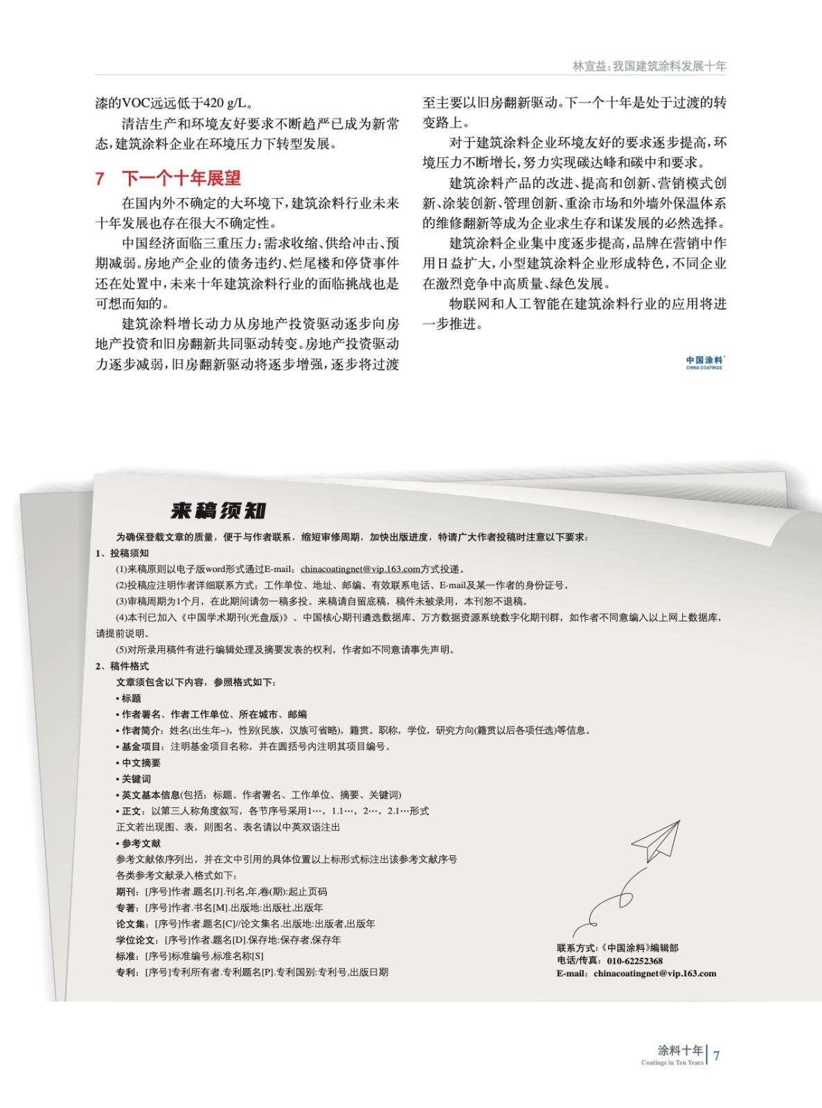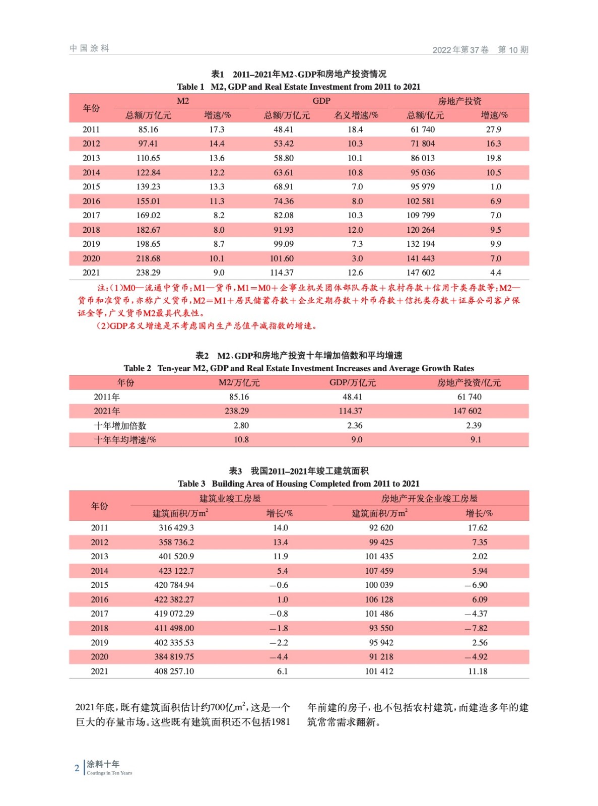 在2012–2021年的十年間,在嚴厲的房地產調控 和舊房翻新等新動力的作用下,在建筑涂料行業內部 創新的推動下,我國建筑涂料不斷向前發展。