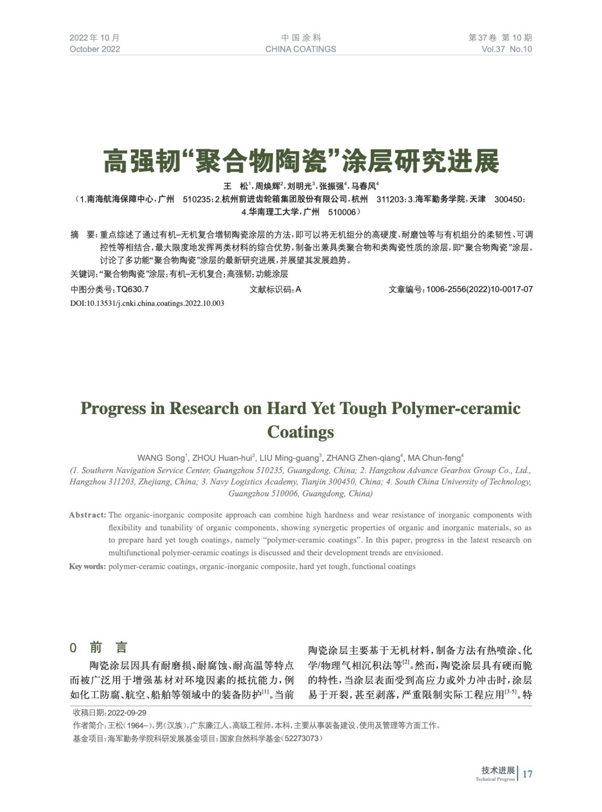 本文系作者@王 松,周煥輝,劉明光,張振強,馬春風 授權中國涂料網發表,并經中國涂料網編輯,未經允許不得轉載,如需轉載請聯系chinacoatingnet@vip.163.com