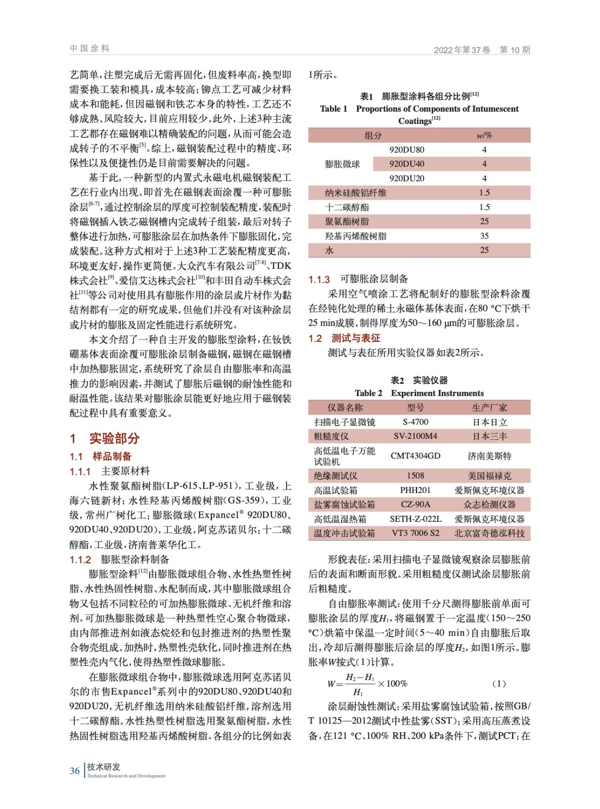 稀土永磁體表面可膨脹涂層的制備及性能研究