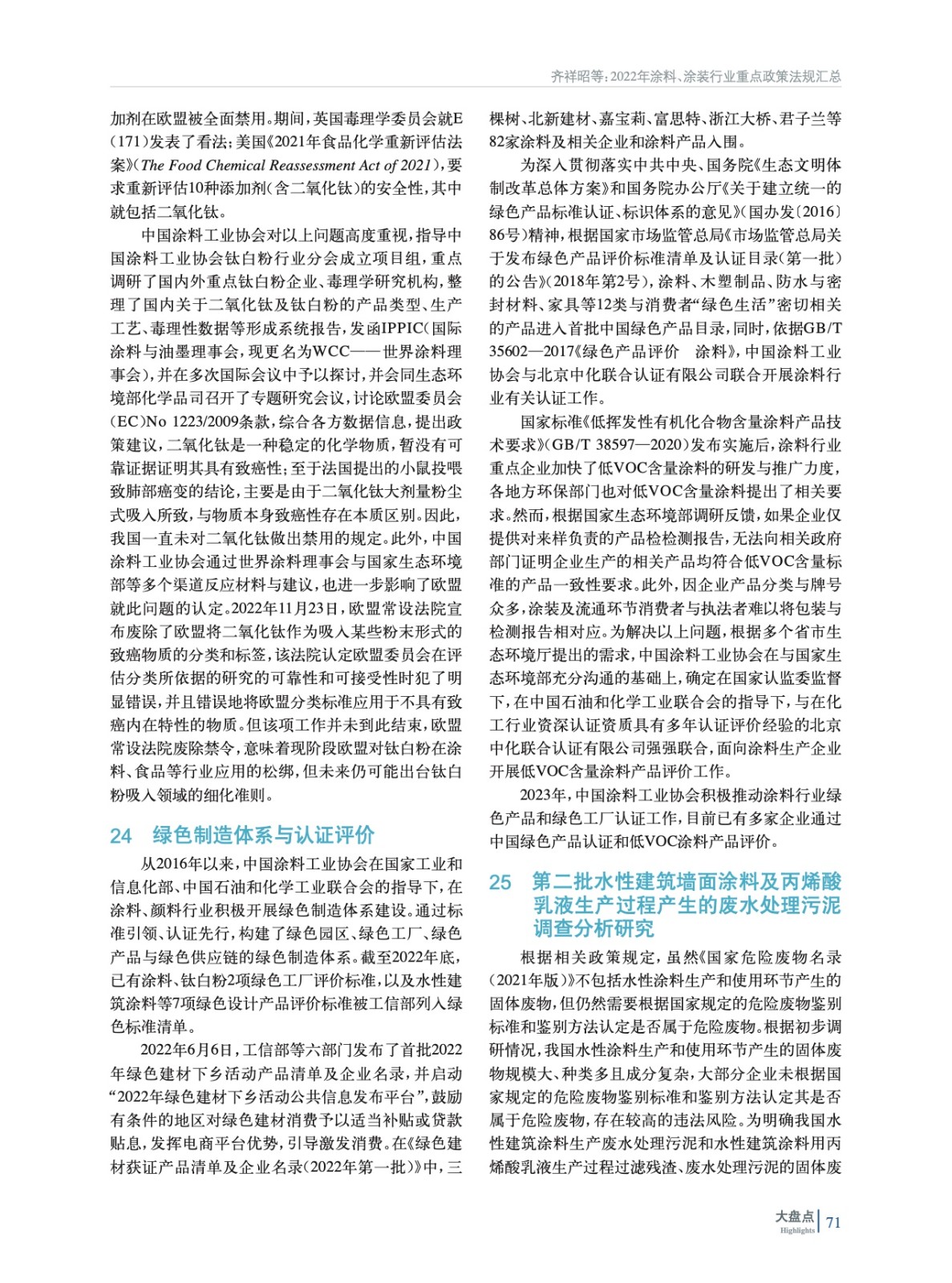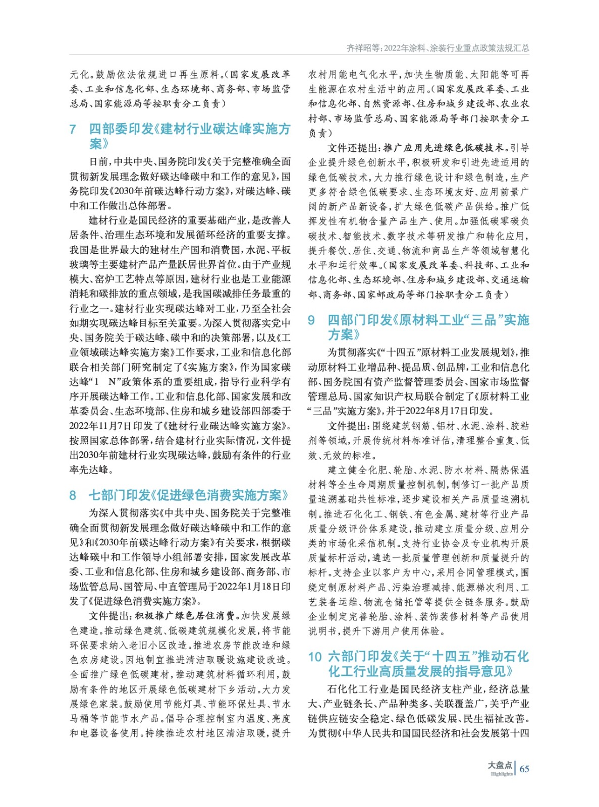 摘要:編者按:在環(huán)境保護(hù)、污染防治、安全生產(chǎn)和產(chǎn)業(yè)結(jié)構(gòu)調(diào)整的政策背景下,2022年國(guó)家出臺(tái)了多項(xiàng)政策法規(guī),特別是在涂料、涂裝領(lǐng)域,《“十四五”危險(xiǎn)化學(xué)品安全生產(chǎn)規(guī)劃方案》、《深入打好重污染天氣消除、臭氧污染防治和柴油貨車污染治理攻堅(jiān)戰(zhàn)行動(dòng)方案》、《環(huán)境監(jiān)管重點(diǎn)單位名錄管理辦法》、碳達(dá)峰管理文件、綠色消費(fèi)、職業(yè)分類、含鉛涂料、綠色制造體系和認(rèn)證評(píng)價(jià)等重點(diǎn)政策法規(guī)將對(duì)行業(yè)未來(lái)高質(zhì)量發(fā)展起到重要的作用。