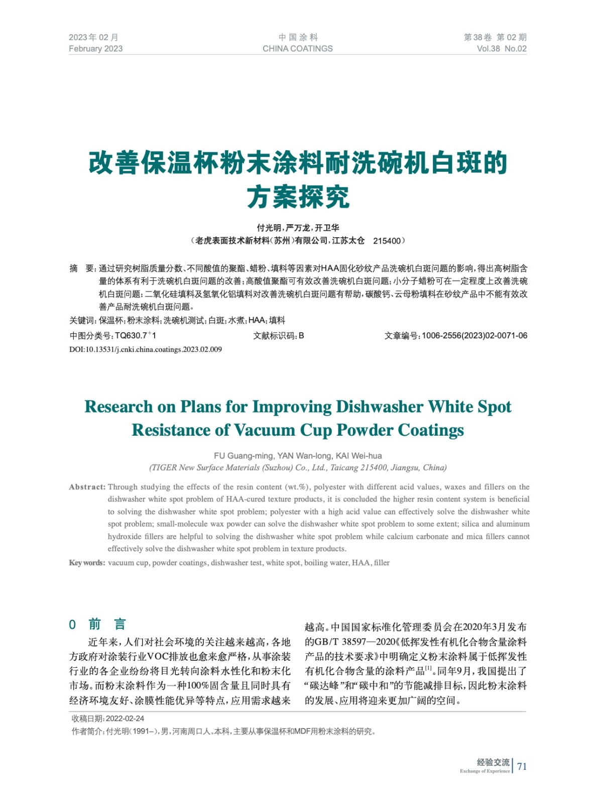 改善保溫杯粉末涂料耐洗碗機白斑的方案探究