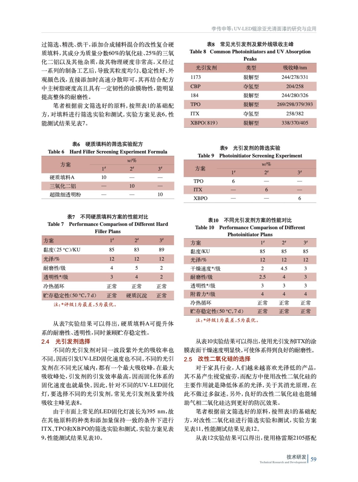 摘要:針對UV-LED輥涂亞光清面漆,從UV樹脂、活性稀釋劑、硬質(zhì)填料、光引發(fā)劑和消光粉選擇等方面進(jìn)行探討,通過實(shí)驗(yàn)論證以及輥涂設(shè)備應(yīng)用測試,驗(yàn)證了其在工業(yè)化應(yīng)用上的可行性。