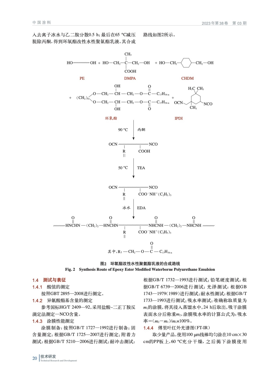 環氧酯改性水性聚氨酯的合成及性能研究