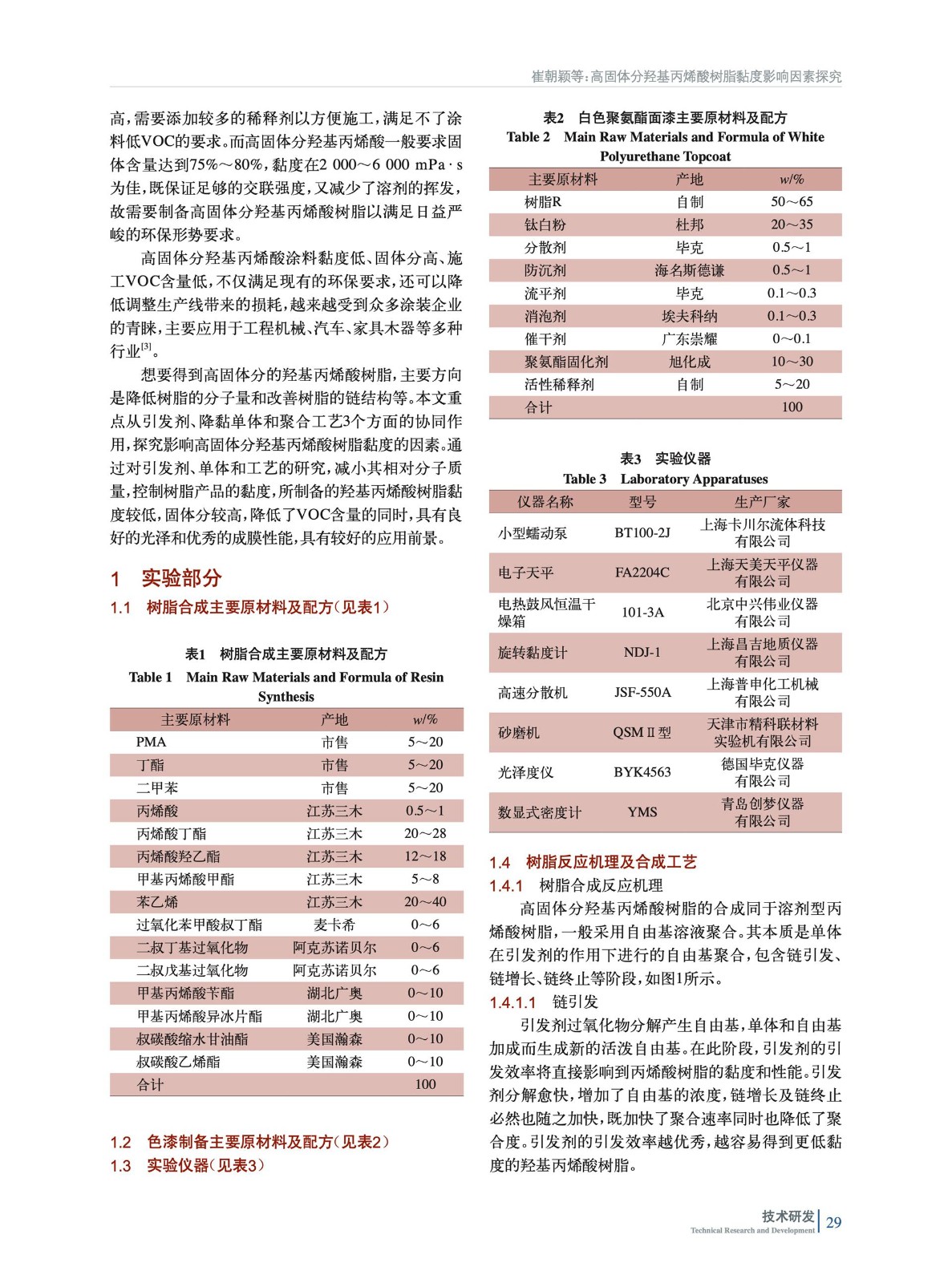 高固體分羥基丙烯酸樹脂黏度影響因素探究