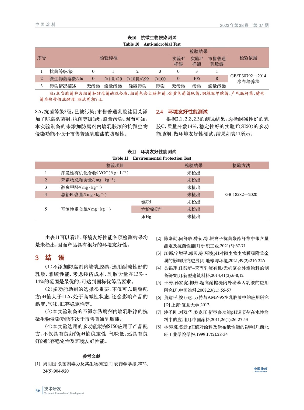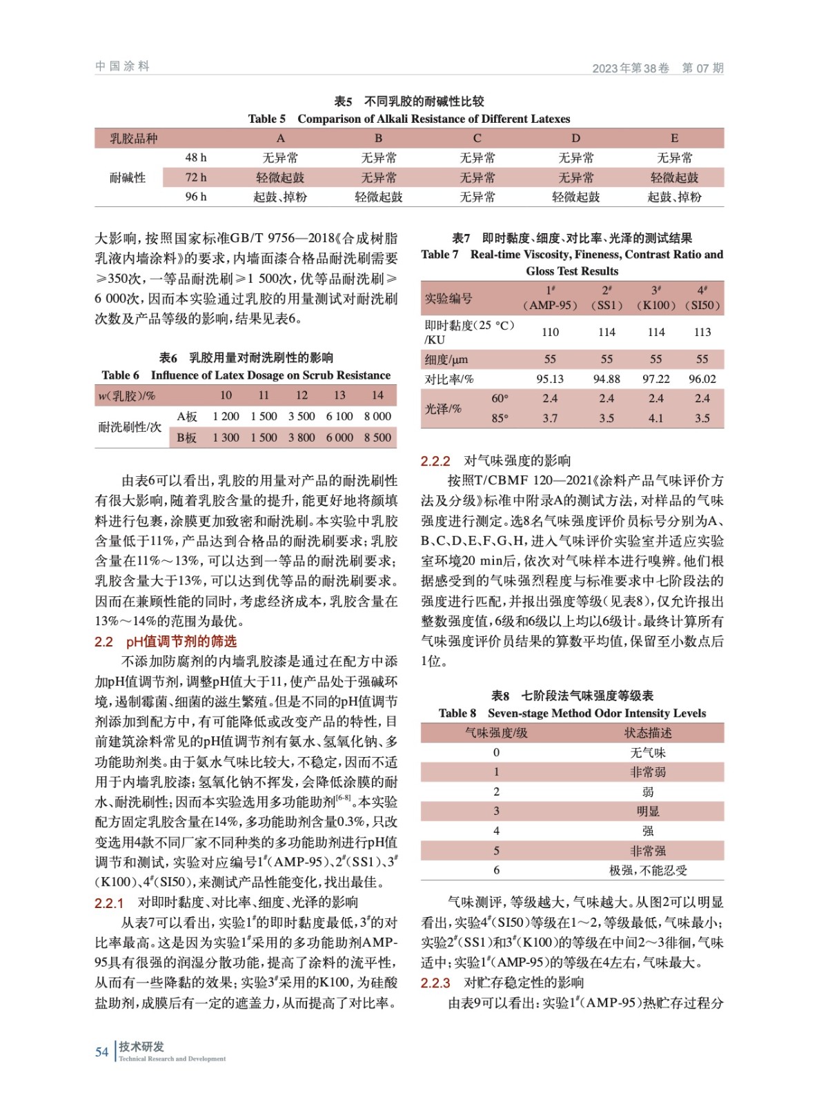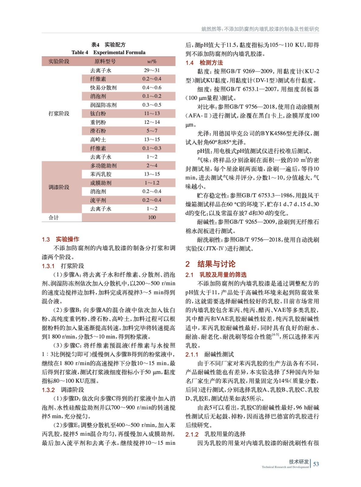 摘要:研究了一種不添加防腐劑內(nèi)墻乳膠漆的制備及各項性能,實驗不添加任何的防腐劑防霉劑,而是通過調(diào)整配方的pH值大于11,處于高堿性狀態(tài),使大部分霉菌、細菌是無法滋生繁殖。該研究主要從乳膠及用量的選擇,填料的選擇,多功能助劑的選擇,增稠劑的選擇,產(chǎn)品的遮蓋力、貯存穩(wěn)定性、耐洗刷性、堿性持久性、施工性、環(huán)境友好性等幾個方面進行討論。研究結(jié)果表明,選用耐高堿的苯丙乳膠,質(zhì)量分數(shù)在13%~14%,多功能助劑選用SI50,合理配用其他顏填料和助劑,制得的乳膠漆具有良好的遮蓋力、貯存穩(wěn)定性、耐洗刷性和施工性,且VOC、甲醛、重金屬的檢測均為未檢出,具有很好的環(huán)境友好性能。