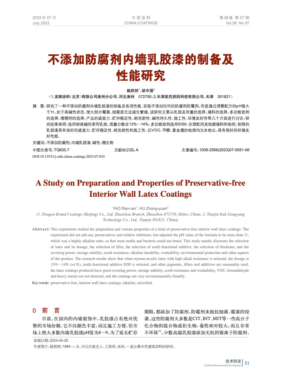 本文系作者@姚然然,胡中源 授權(quán)中國涂料網(wǎng)發(fā)表,并經(jīng)中國涂料網(wǎng)編輯,未經(jīng)允許不得轉(zhuǎn)載,如需轉(zhuǎn)載請聯(lián)系chinacoatingnet@vip.163.com