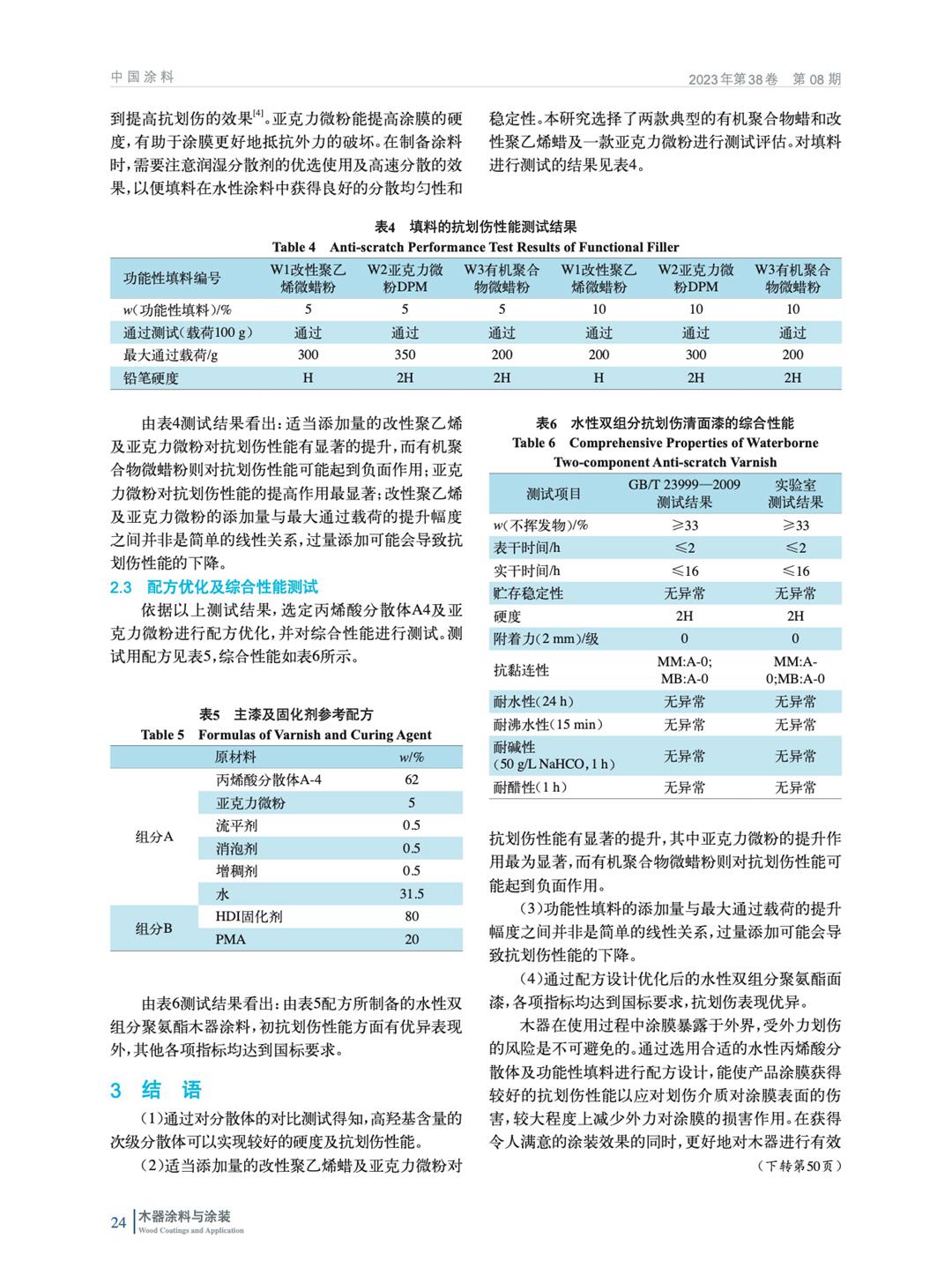 水性雙組分聚氨酯抗劃傷木器清面漆的研發(fā)及應(yīng)用
