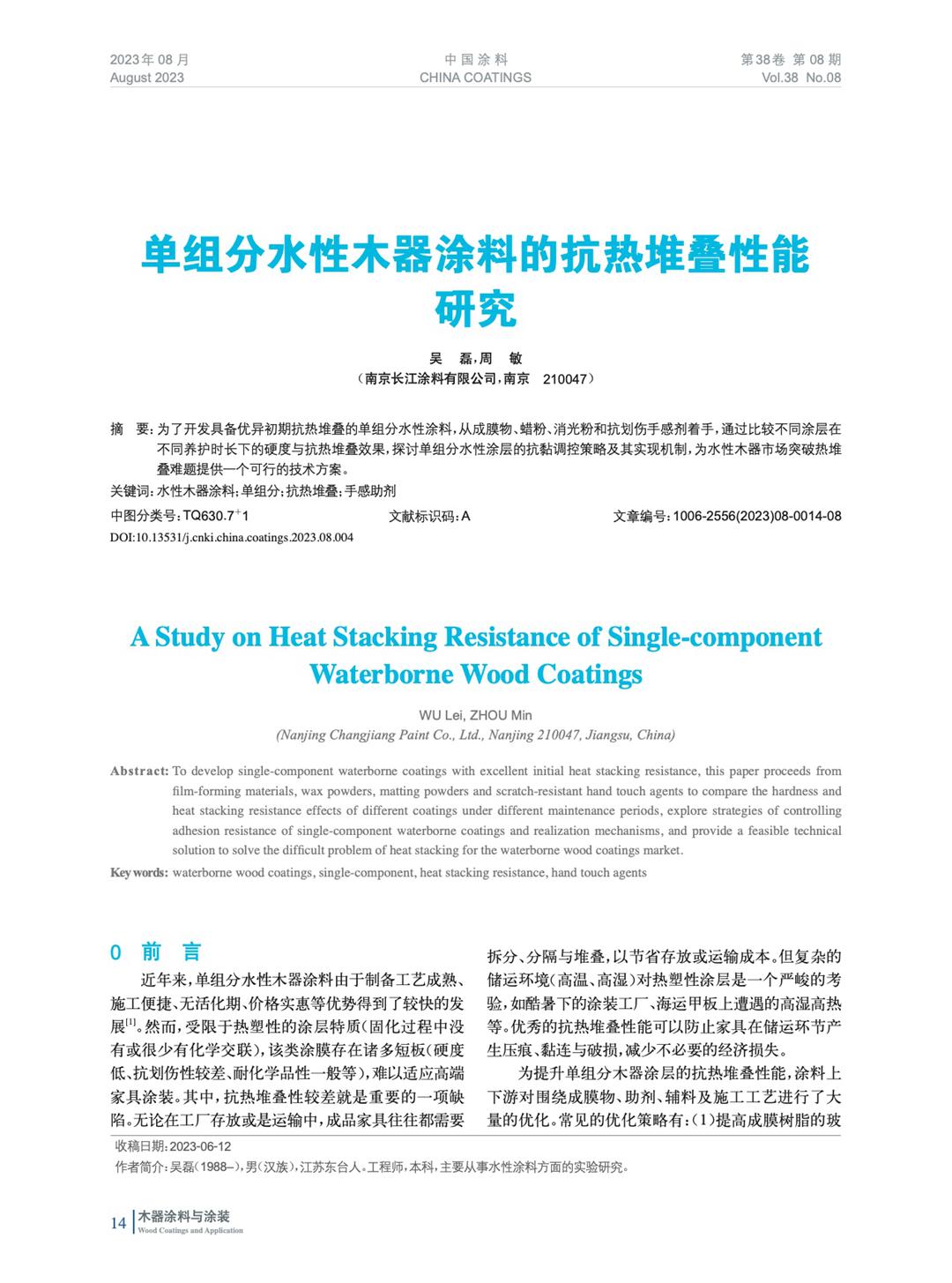 本文系作者@吳 磊,周 敏 授權中國涂料網發表,并經中國涂料網編輯,未經允許不得轉載,如需轉載請聯系chinacoatingnet@vip.163.com