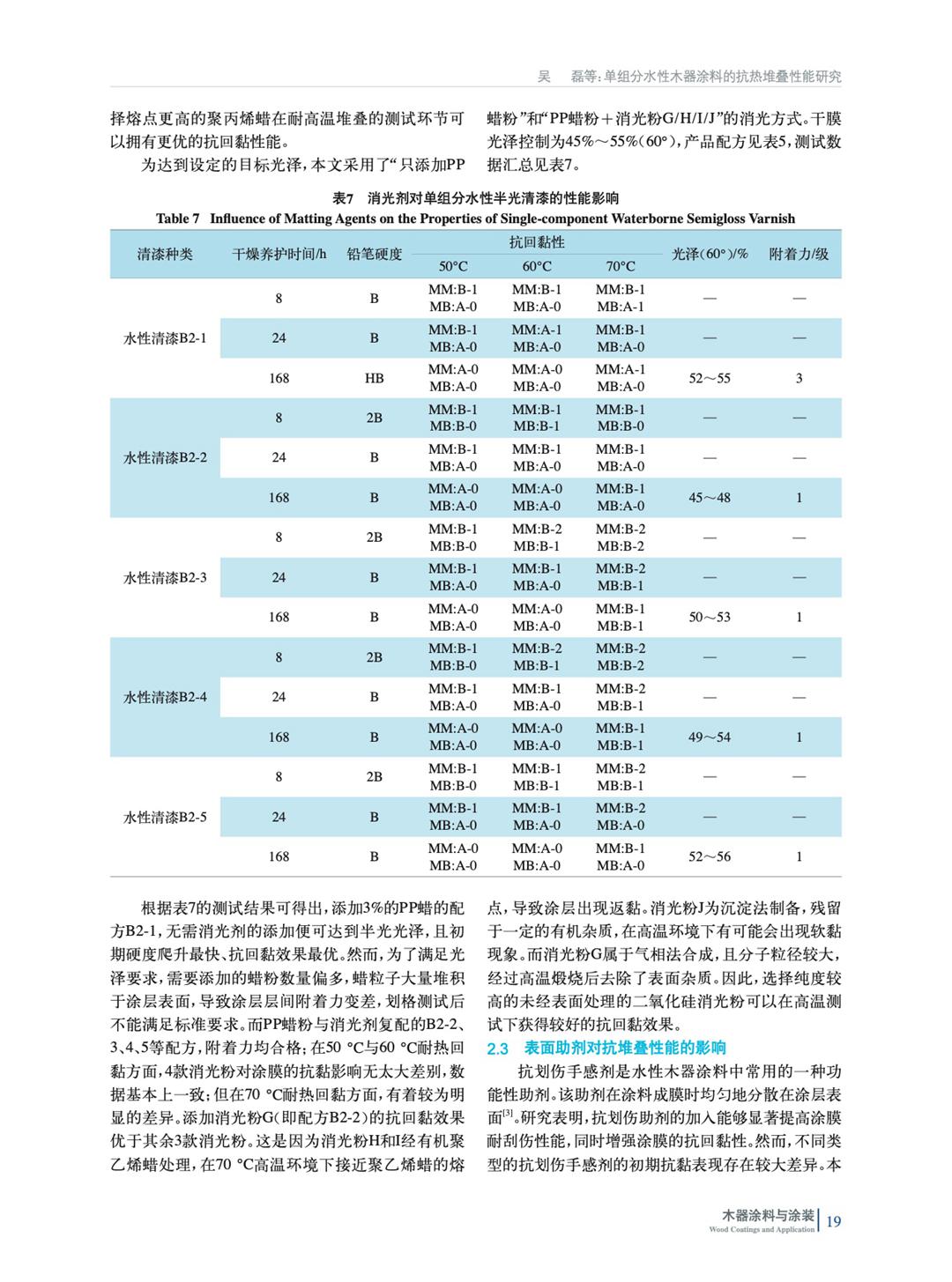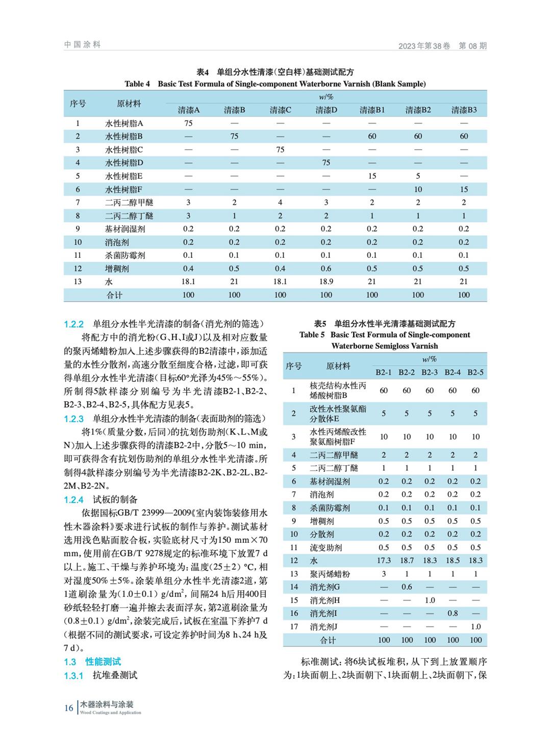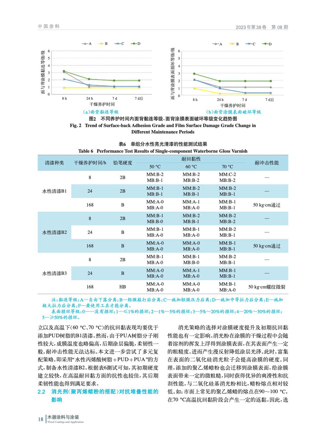 為了開發具備優異初期抗熱堆疊的單組分水性涂料,從成膜物、蠟粉、消光粉和抗劃傷手感劑著手,通過比較不同涂層在不同養護時長下的硬度與抗熱堆疊效果,探討單組分水性涂層的抗黏調控策略及其實現機制,為水性木器市場突破熱堆疊難題提供一個可行的技術方案。