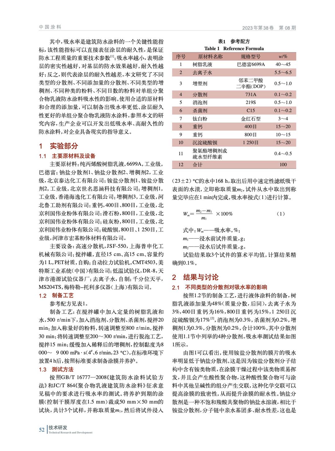 單組分聚合物乳液防水涂料吸水率的影響因素研究