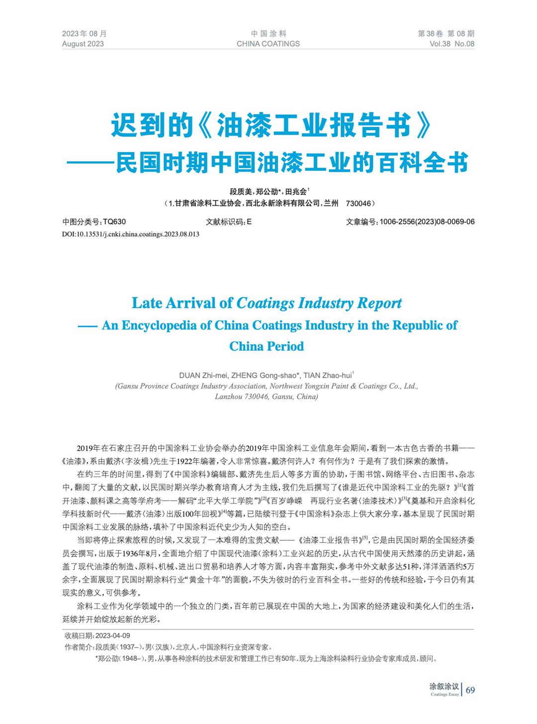 遲到的《油漆工業(yè)報告書》——民國時期中國油漆工業(yè)的百科全書
