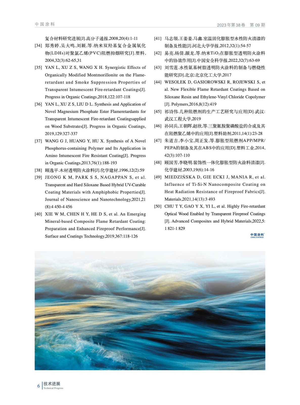 系統闡述了磷系、鹵系、氮系、硅系以及無機金屬氫氧化物等透明阻燃涂料的機理,以及原料種類、原料配比、工藝條件等對其制備工藝與性能的影響等方面的研究現狀,并展望了透明阻燃涂料的研究與應用前景。