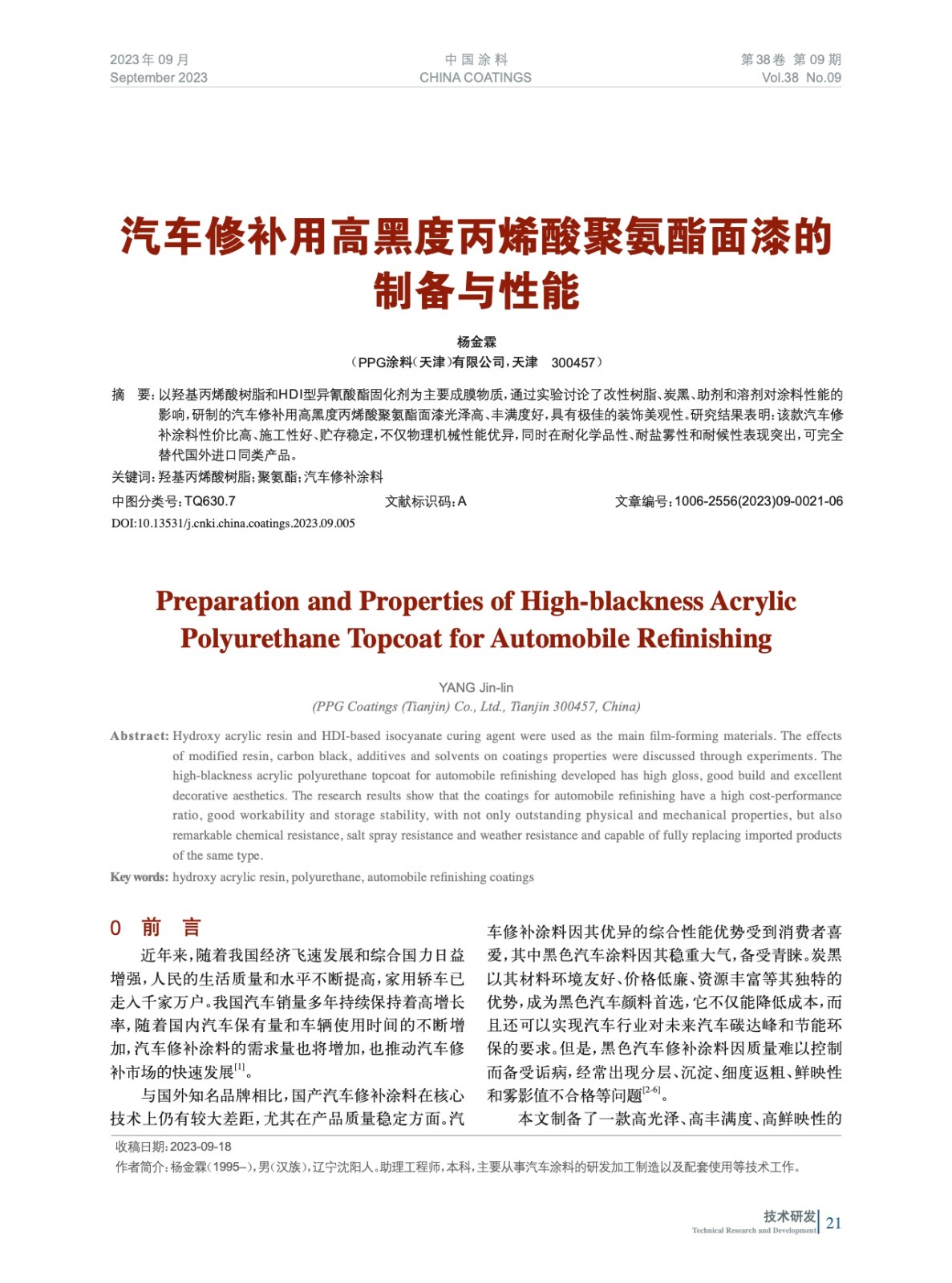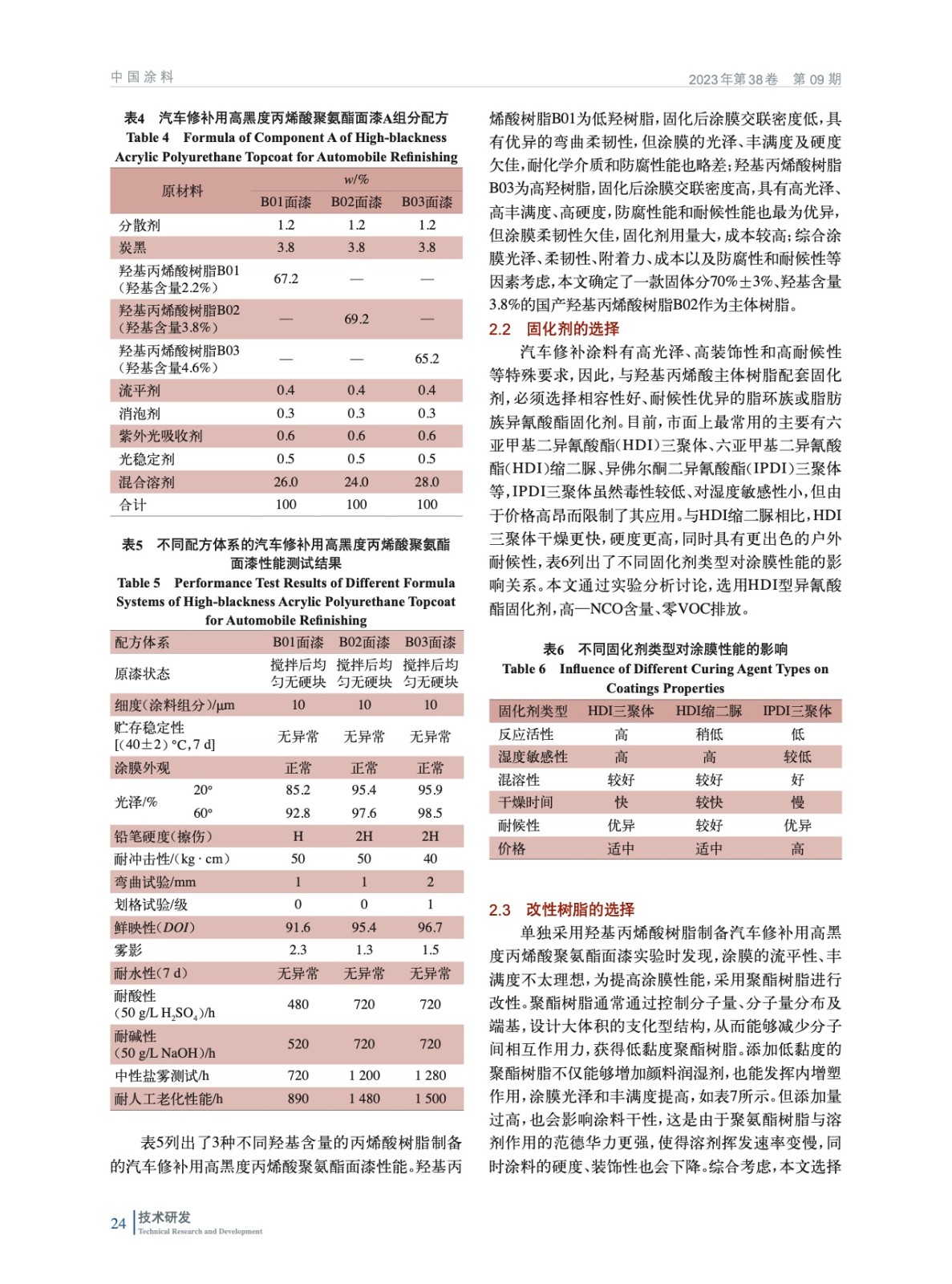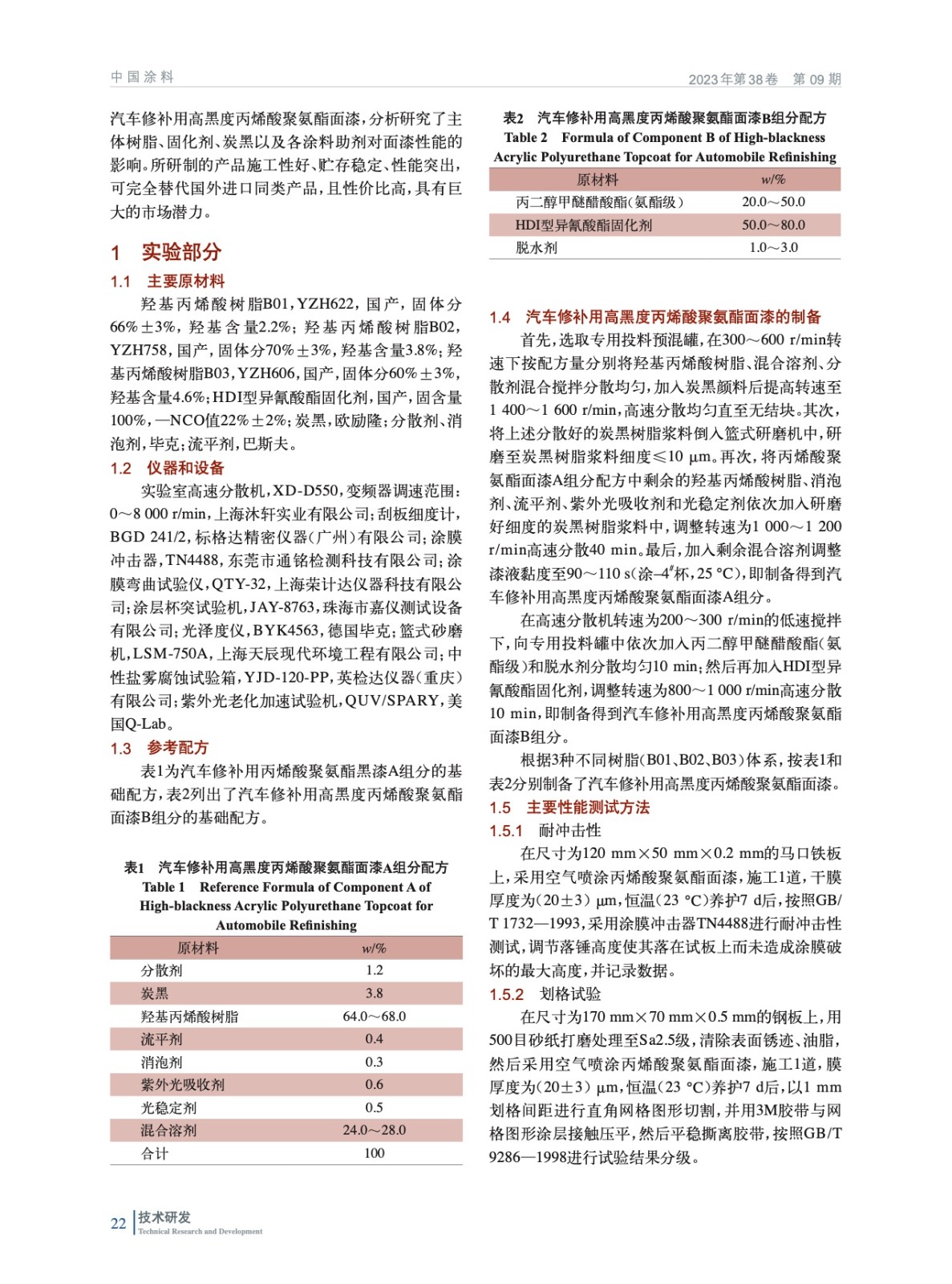 汽車修補(bǔ)用高黑度丙烯酸聚氨酯面漆的制備與性能