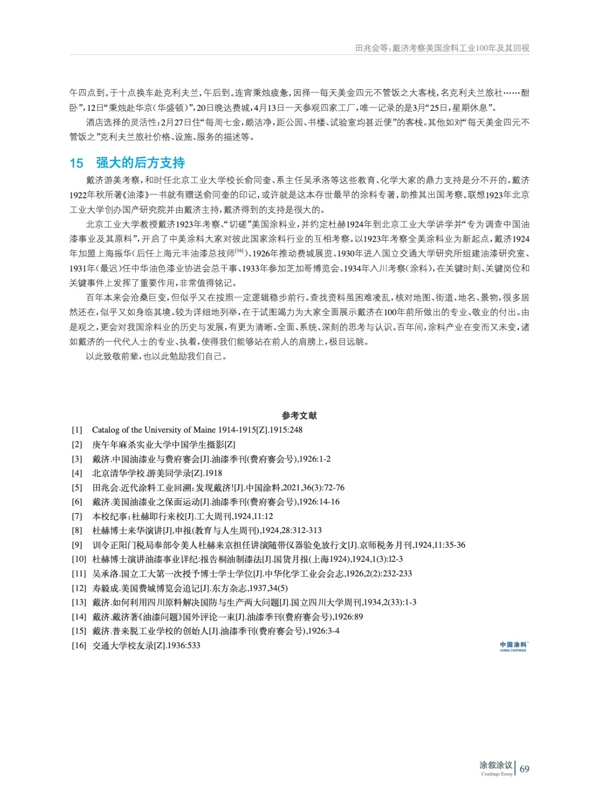 戴濟考察美國涂料工業100年及其回視