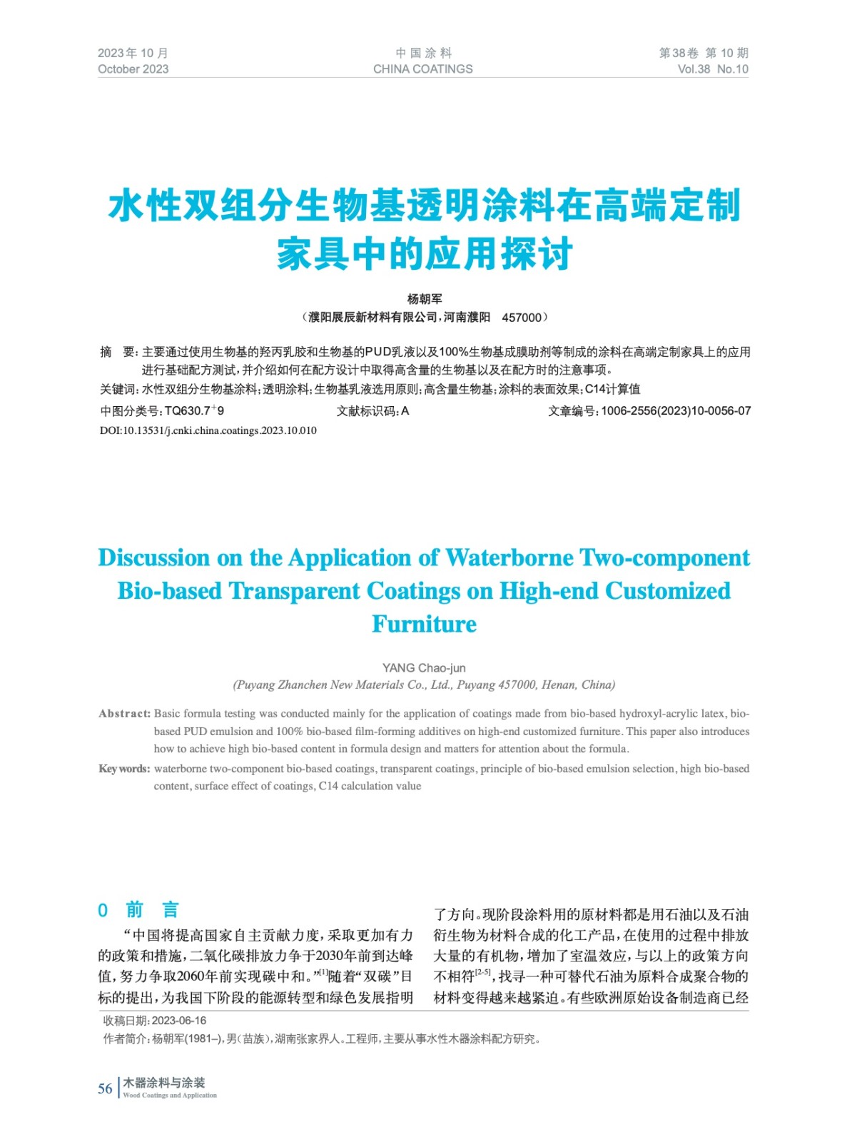 水性雙組分生物基透明涂料在高端定制家具中的應用探討