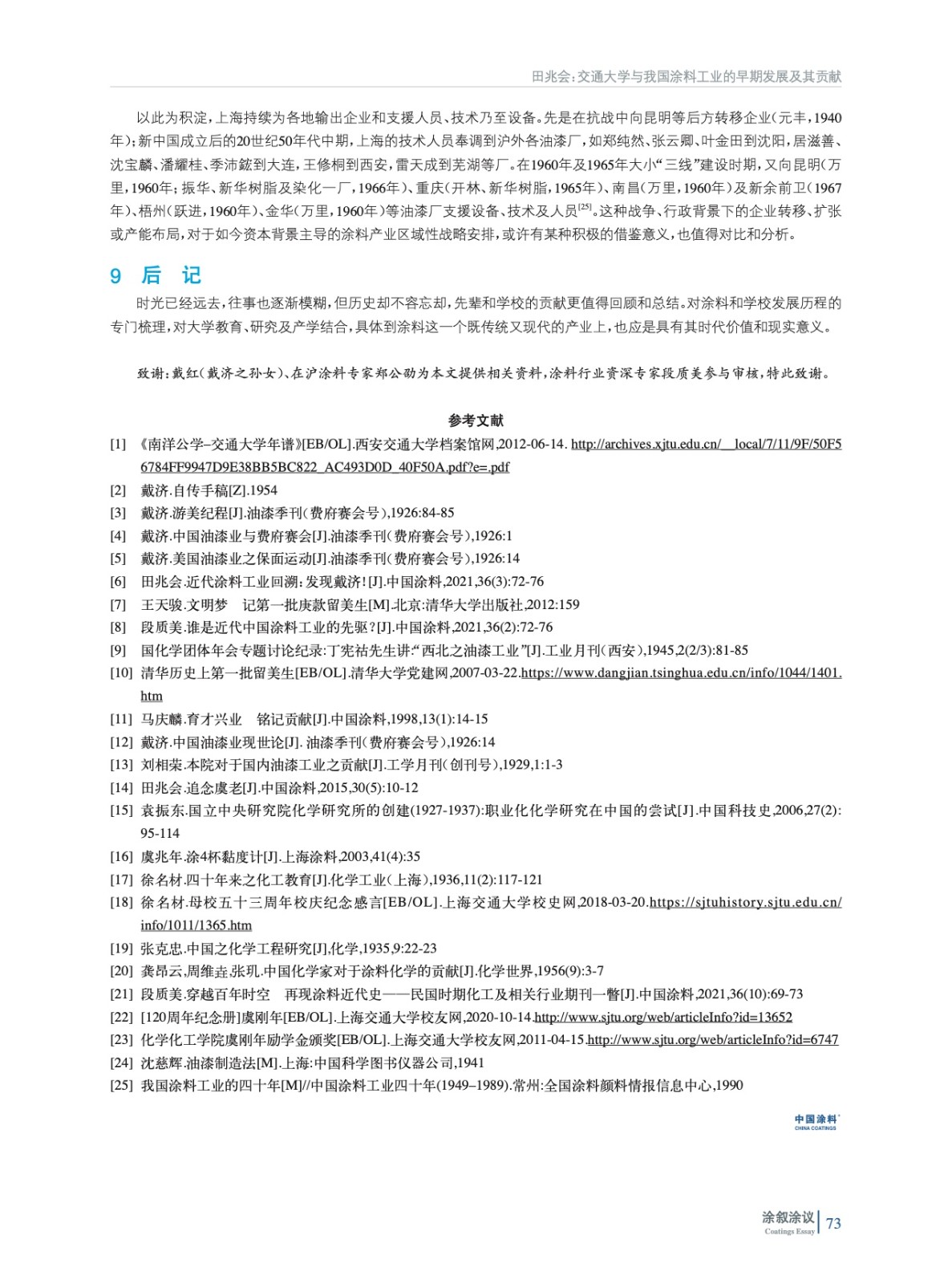 交通大學與我國涂料工業的早期發展及其貢獻