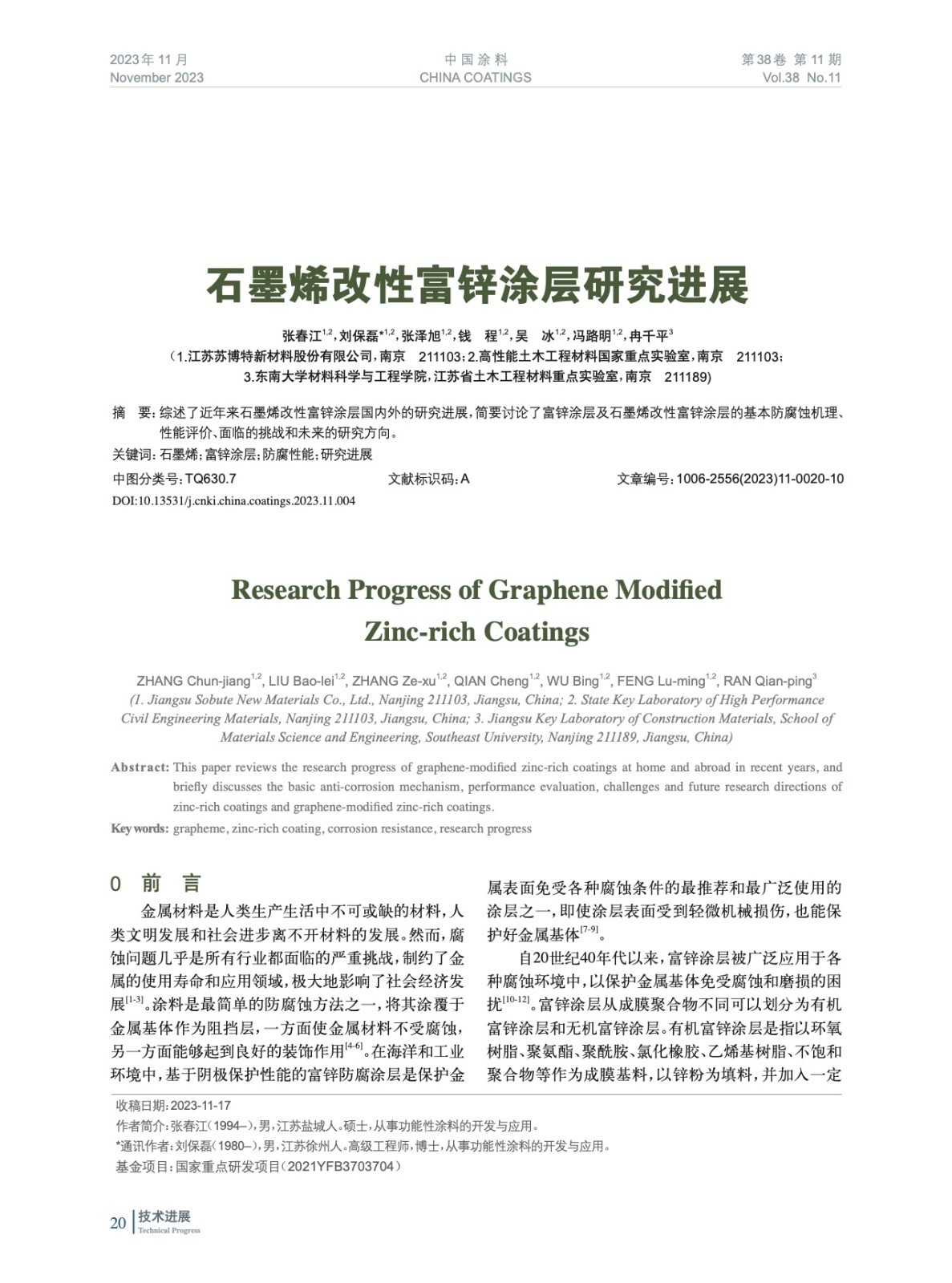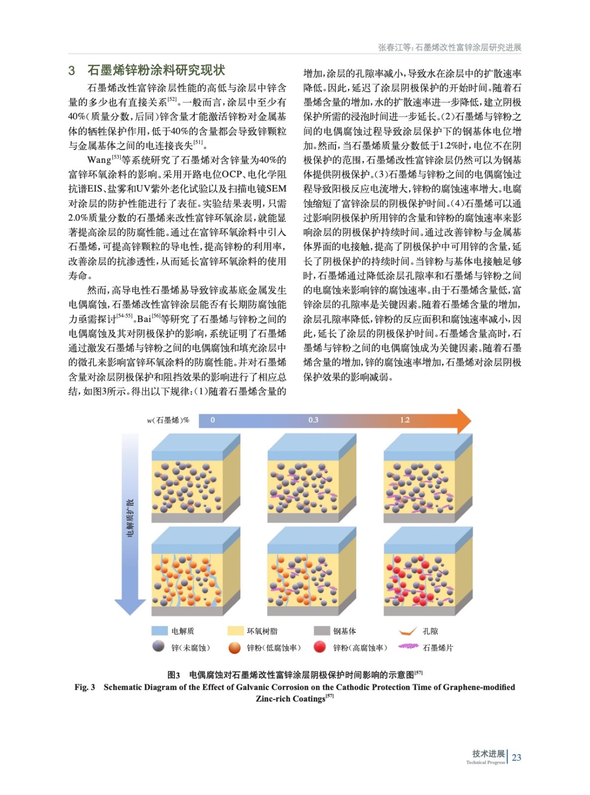 摘要:綜述了近年來(lái)石墨烯改性富鋅涂層國(guó)內(nèi)外的研究進(jìn)展,簡(jiǎn)要討論了富鋅涂層及石墨烯改性富鋅涂層的基本防腐蝕機(jī)理、性能評(píng)價(jià)、面臨的挑戰(zhàn)和未來(lái)的研究方向。